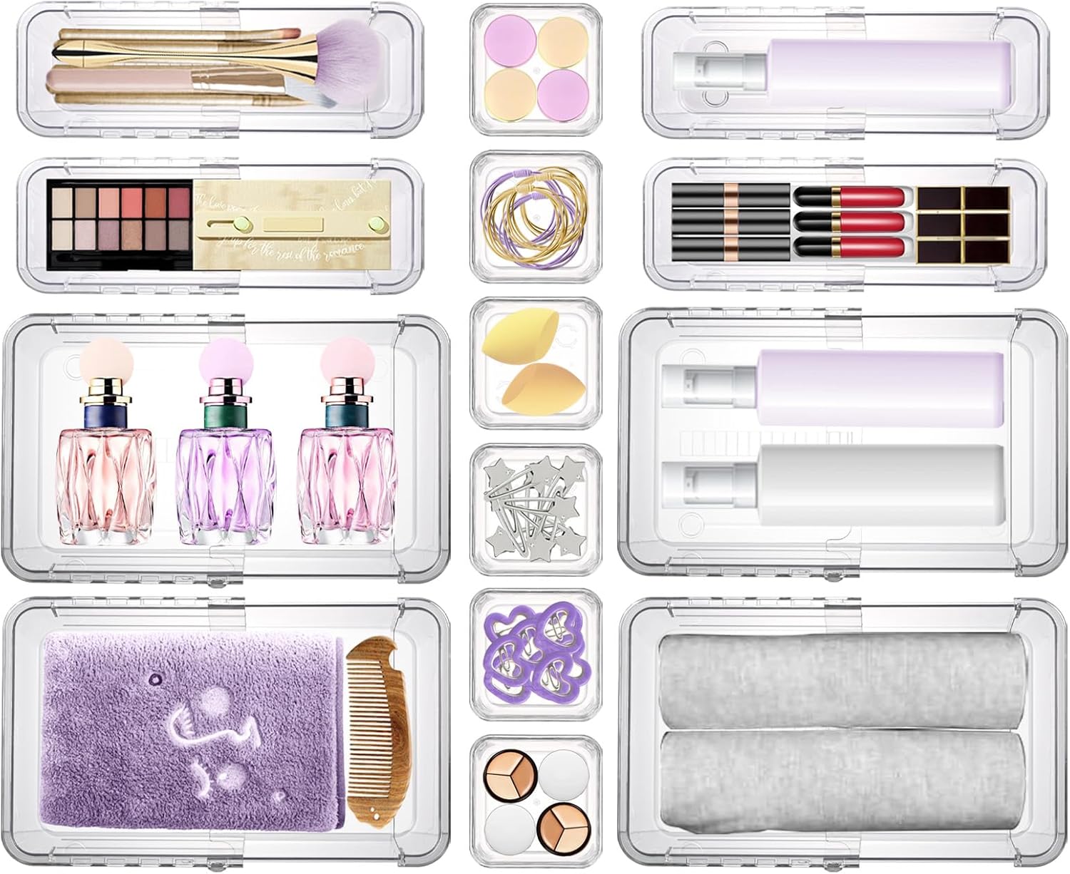 14 Pcs Clear Drawer Organizer, Adjustable Drawer Storage Box, 3-Size Desk Drawer Organizer, Acrylic Storage Bins for Makeup, Cosmetic, Kitchen Utensils, Bedroom Dressers Tool Organizer for Gadgets