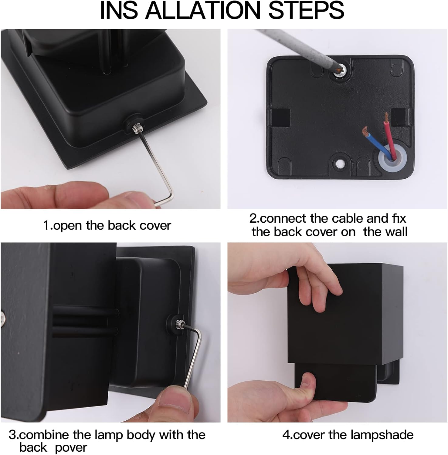 4 Pack Outdoor Wall Lights Exterior/Interior LED Wall Sconces IP65 Waterproof Square Aluminum Wall Lamps Outdoor Lighting Fixture Up and Down Lights Modern Black 12W 3000K Warm Lights