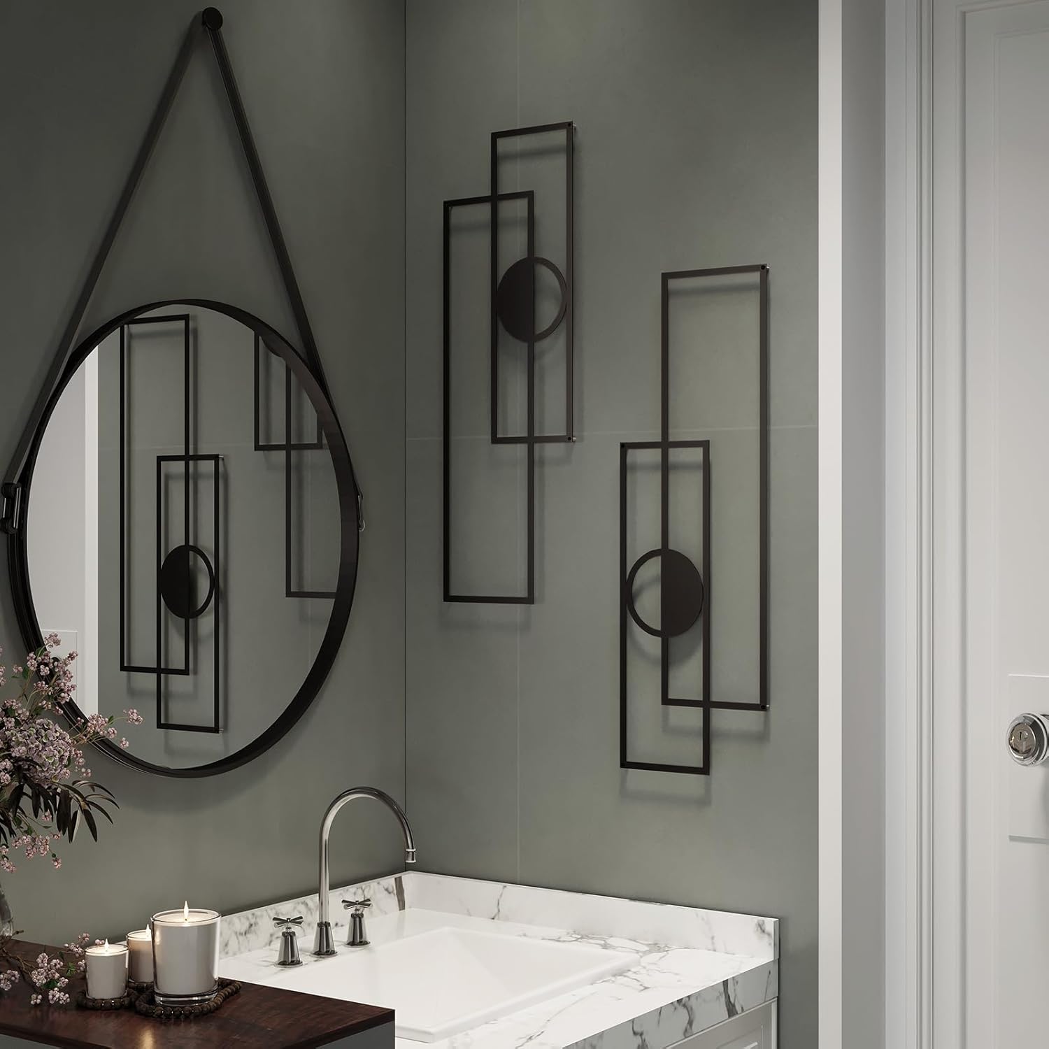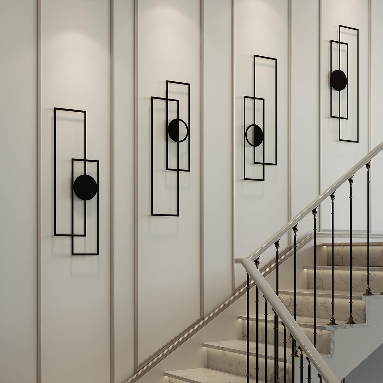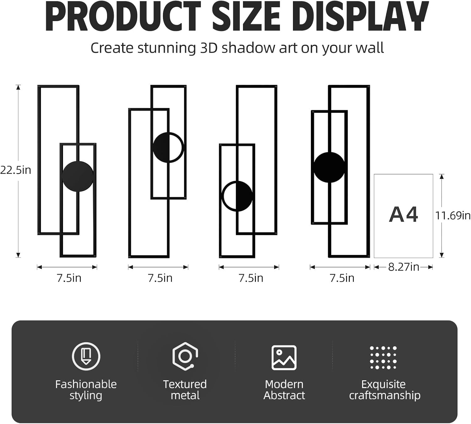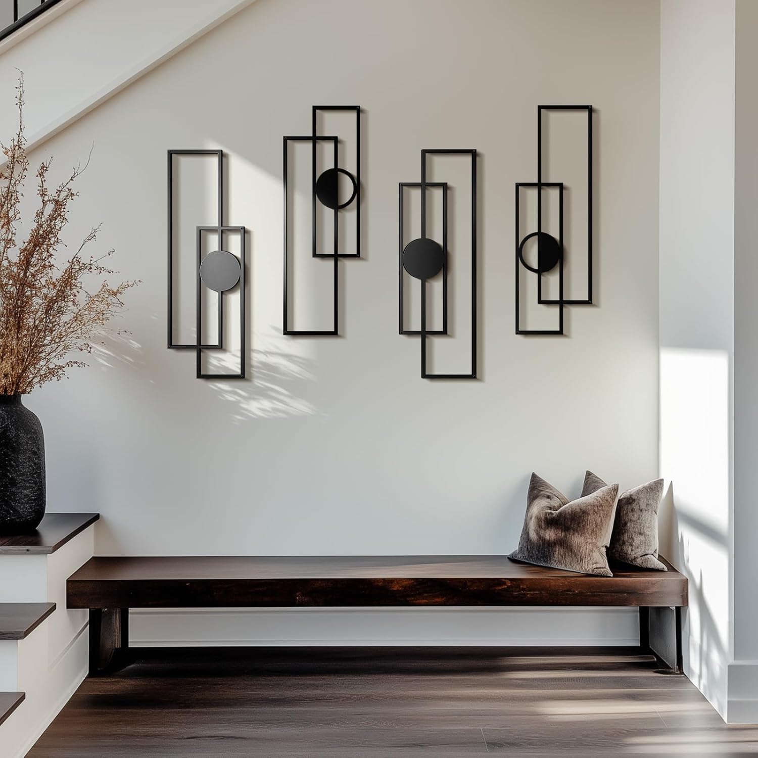 Abstract Black Metal Wall Art for Living Room, 4 Pack Large Wall Sculptures Minimalist Modern 3D Textured Geometric Metal Wall Decor for Bedroom Bathroom Kitchen Study