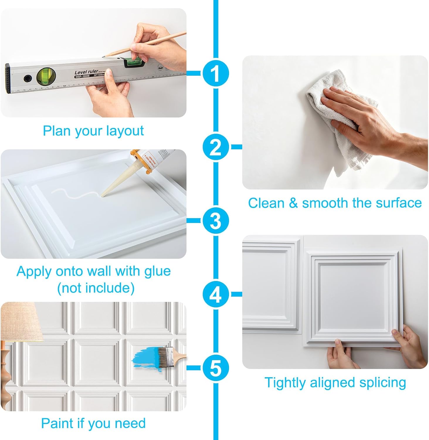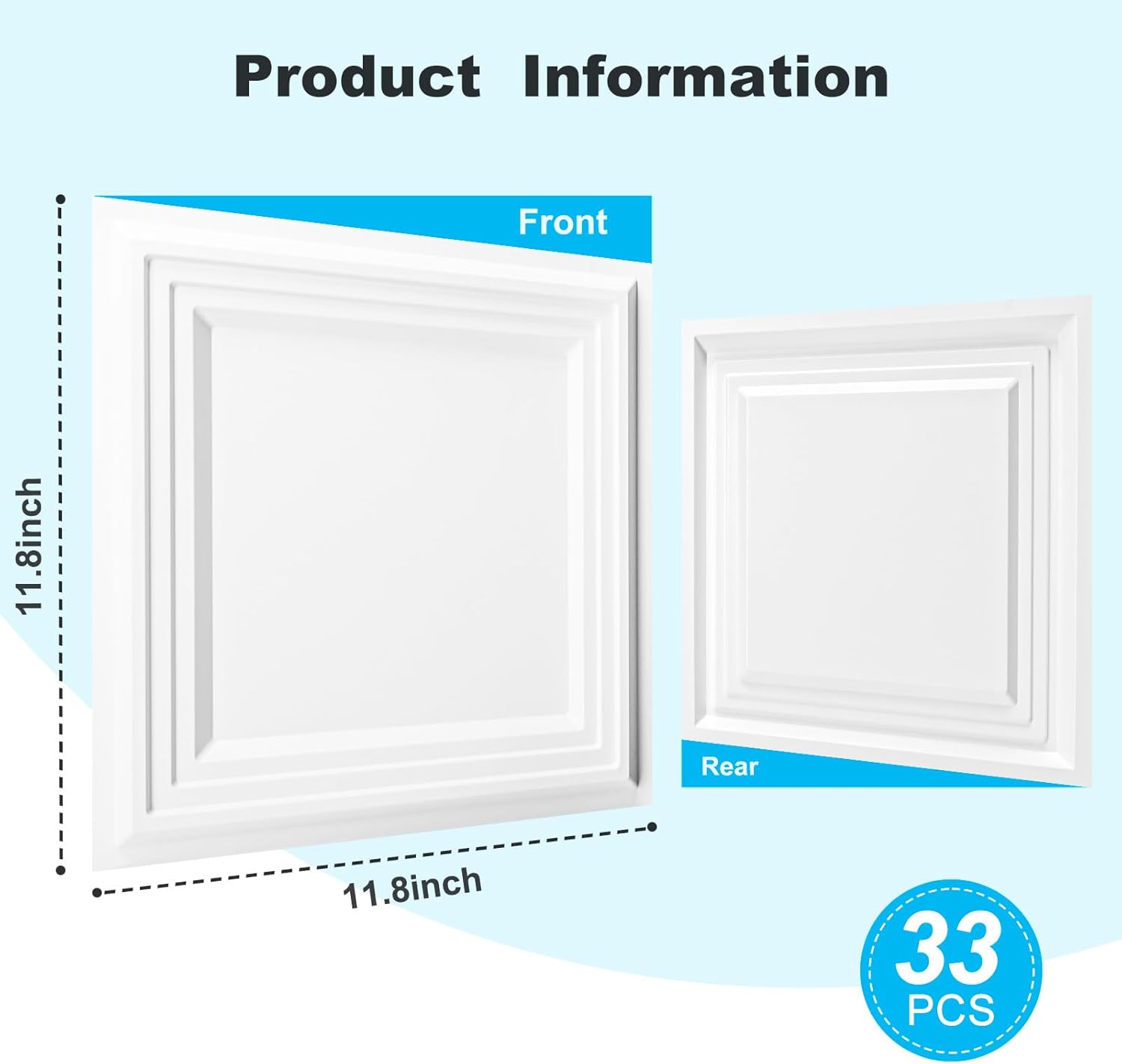 Art3d 33-Pack 3D Textured Accent Wall Panel for Interior Décor, Waterproof PVC Decorative Wall Paneling for Living Room Bedroom Gaming Room Office, 11.8″x11.8″ Cover 32.Sq.Ft., White