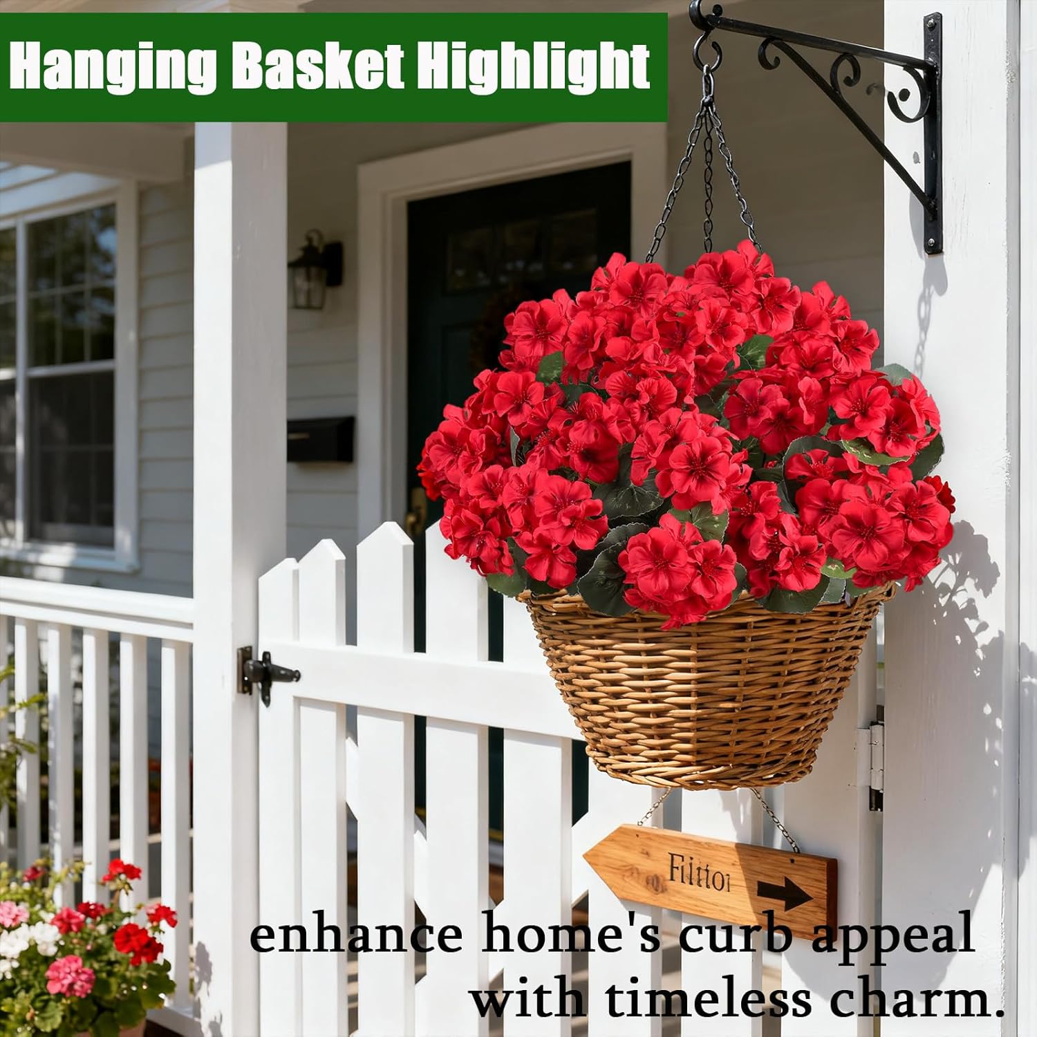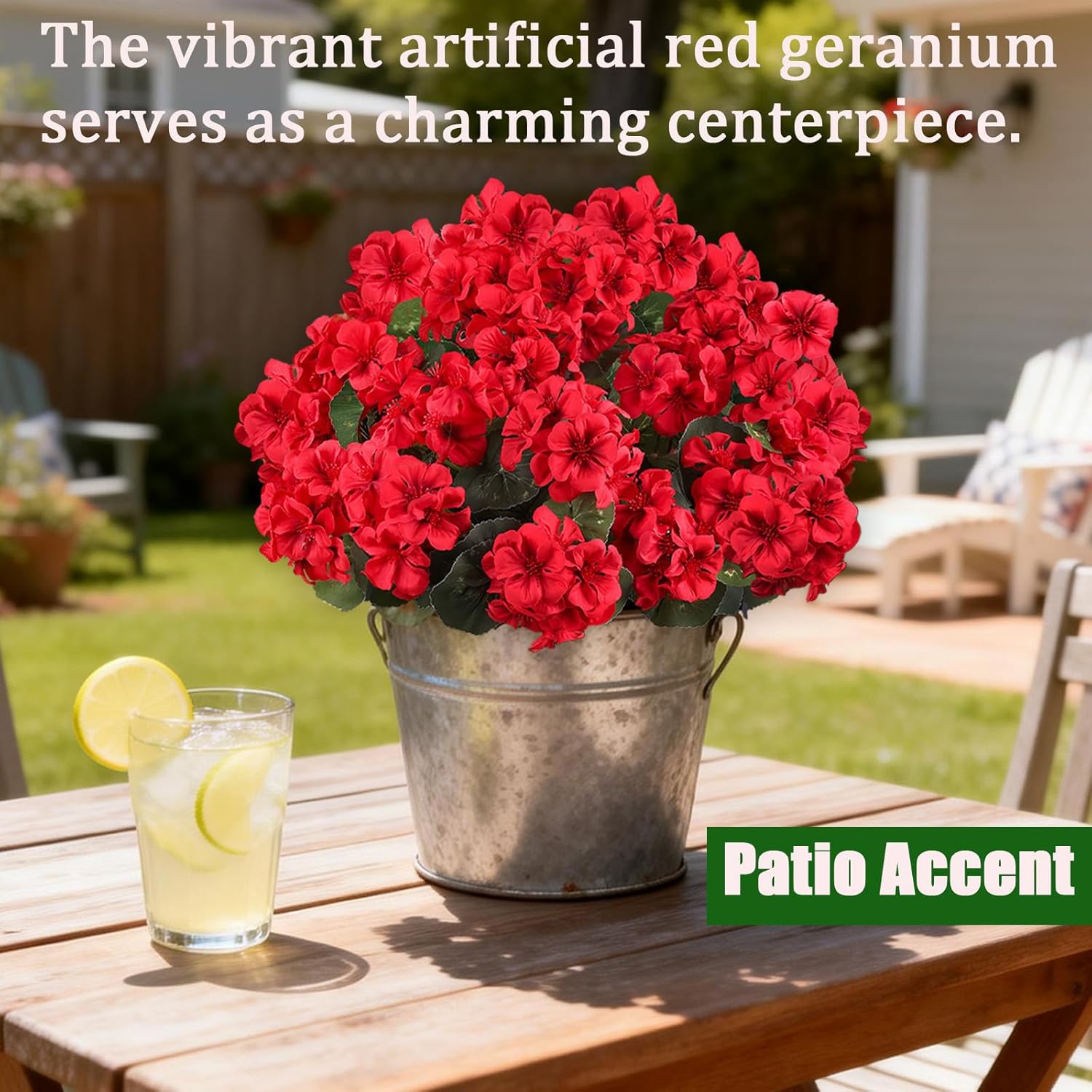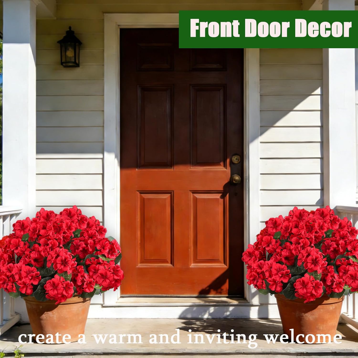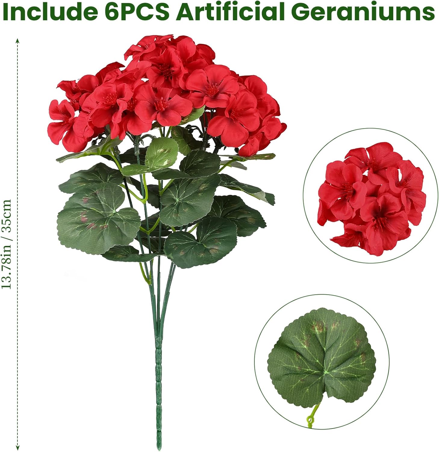 Artificial Flowers for Outdoors, 6 Bundles Realistic Silk Fake Red Geraniums, No Fade Faux Plastic Flowers for Outdoor Planters, Hanging Baskets, Window Boxes, Porch, Patio Decor