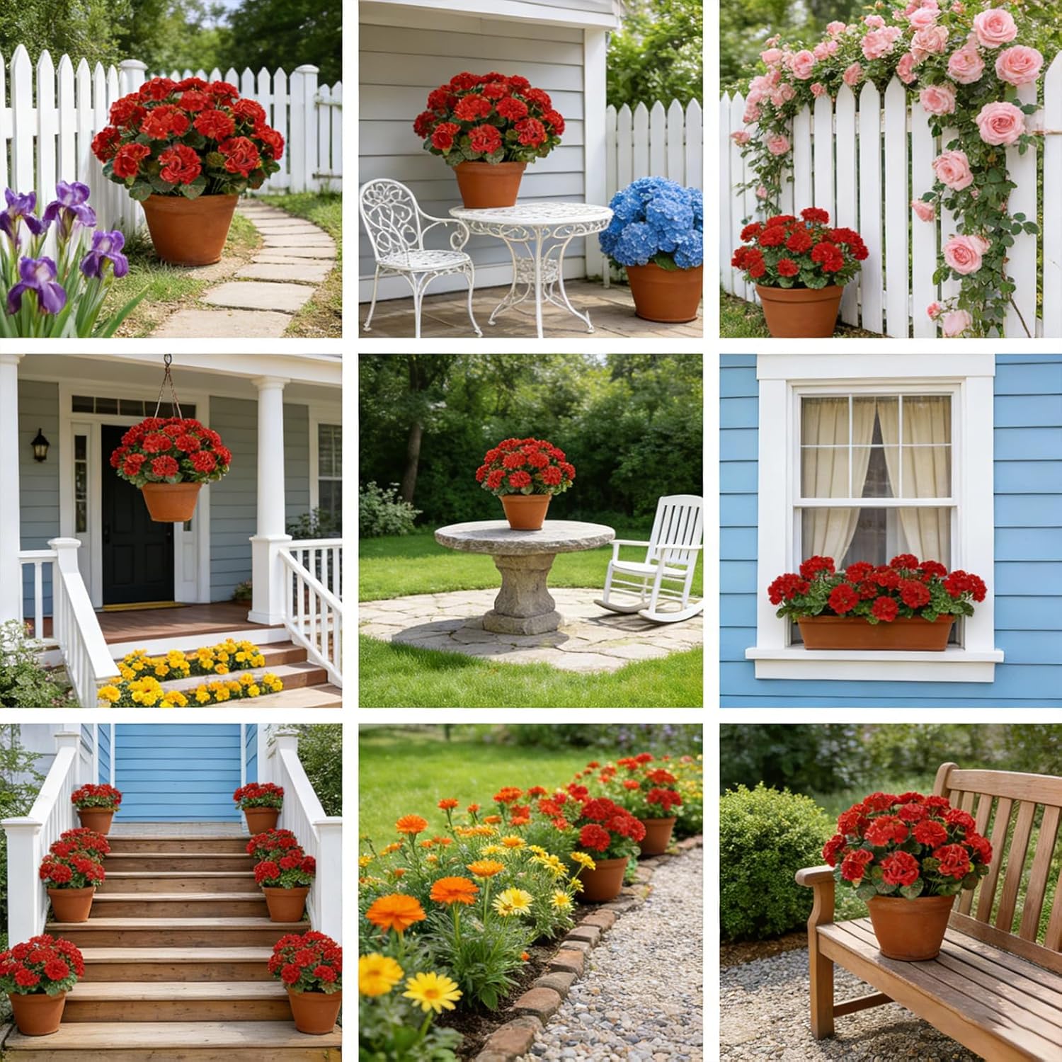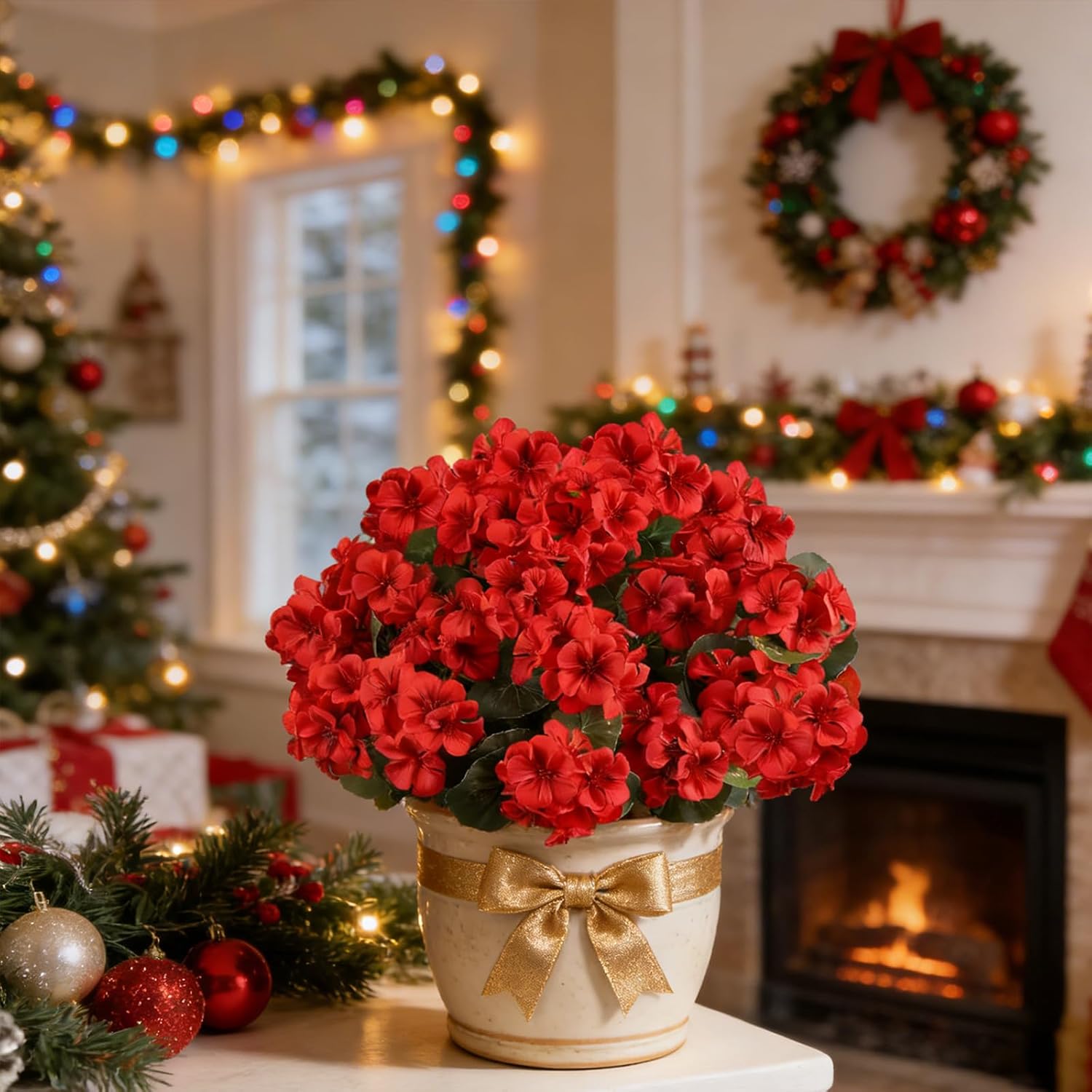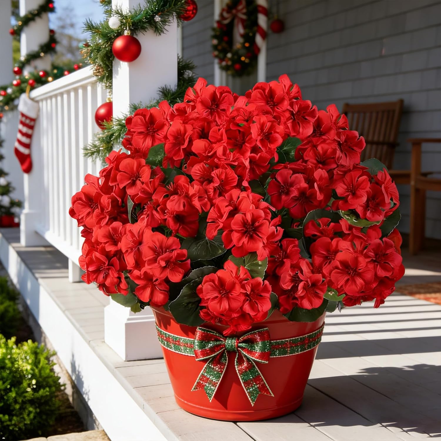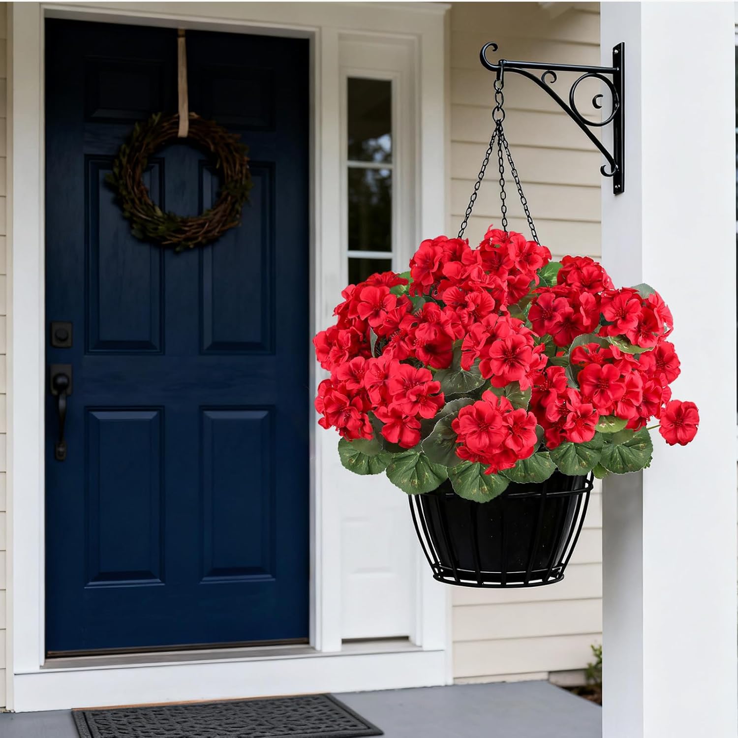 Artificial Flowers for Outdoors, 6 Bundles Realistic Silk Fake Red Geraniums, No Fade Faux Plastic Flowers for Outdoor Planters, Hanging Baskets, Window Boxes, Porch, Patio Decor