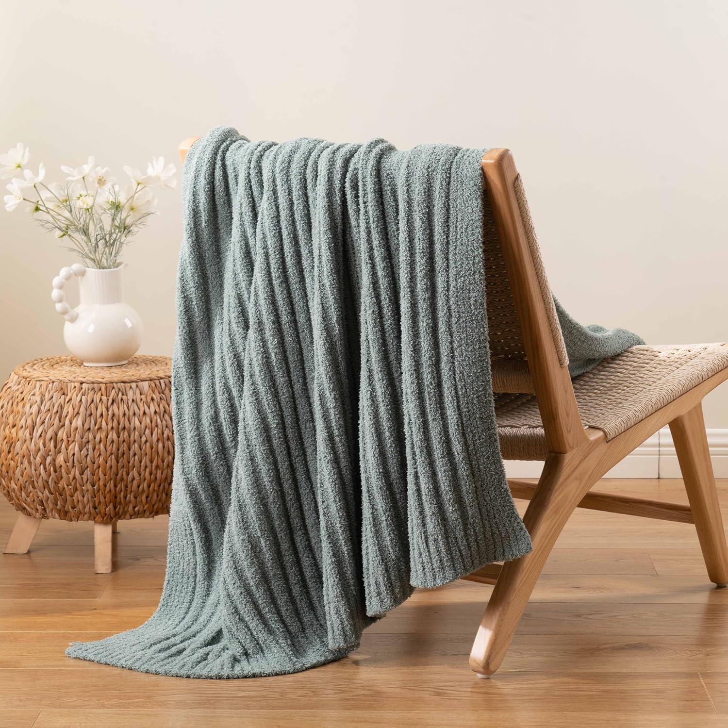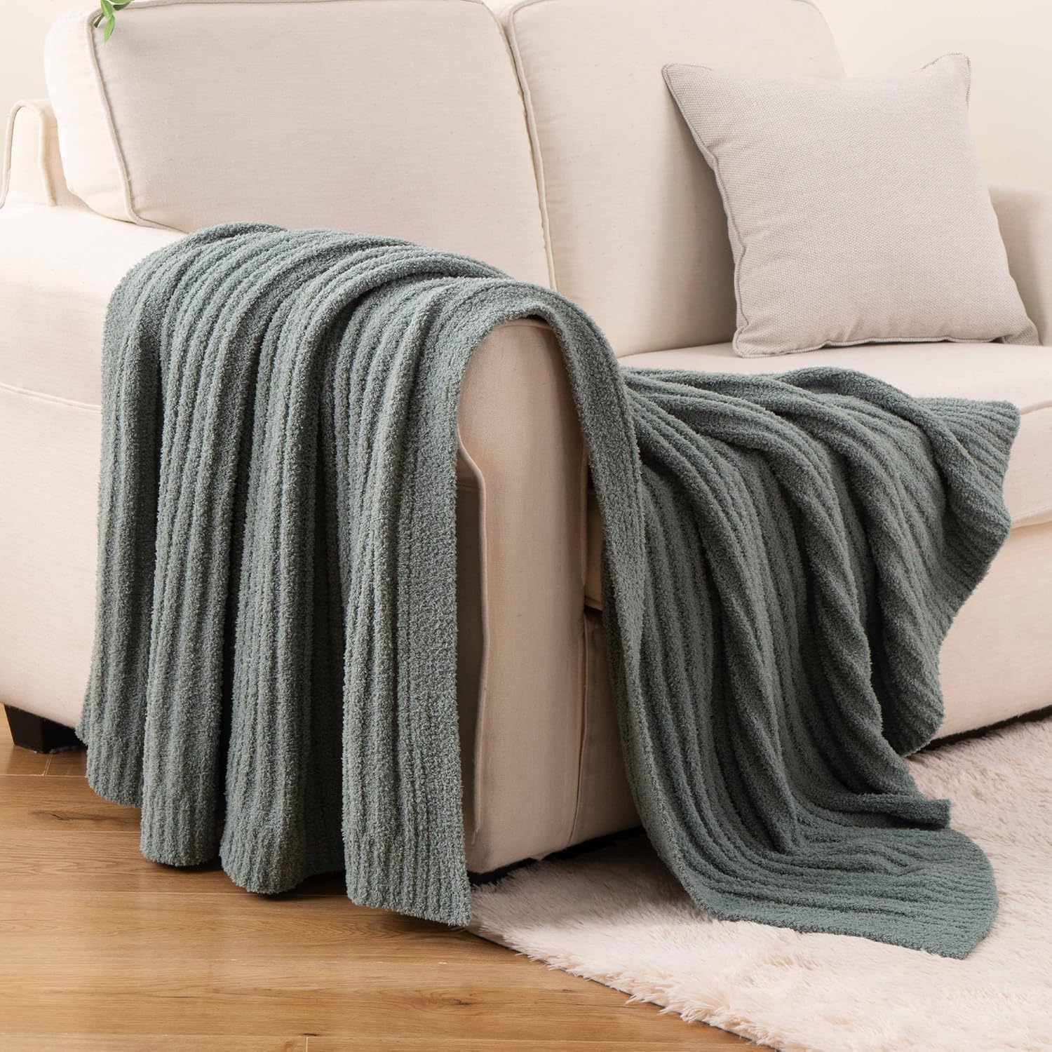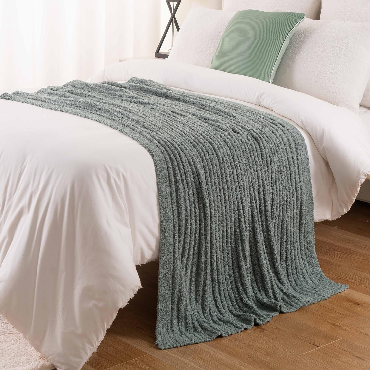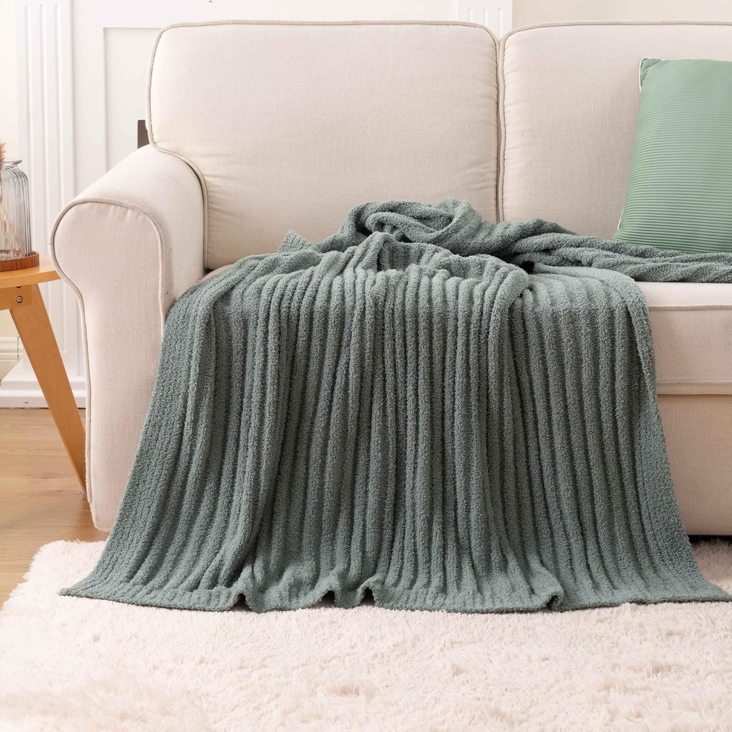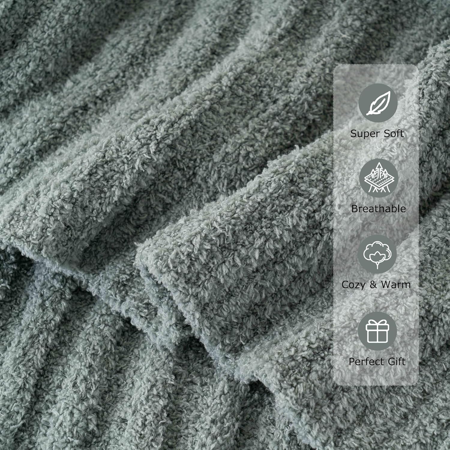 BATTILO Spring Sage Green Soft Throw Blanket, Knit Fuzzy Plush Green Throw Blankets, Fluffy Warm Lightweight Blanket for Bed, Sofa, Home Decor, 50″x60″