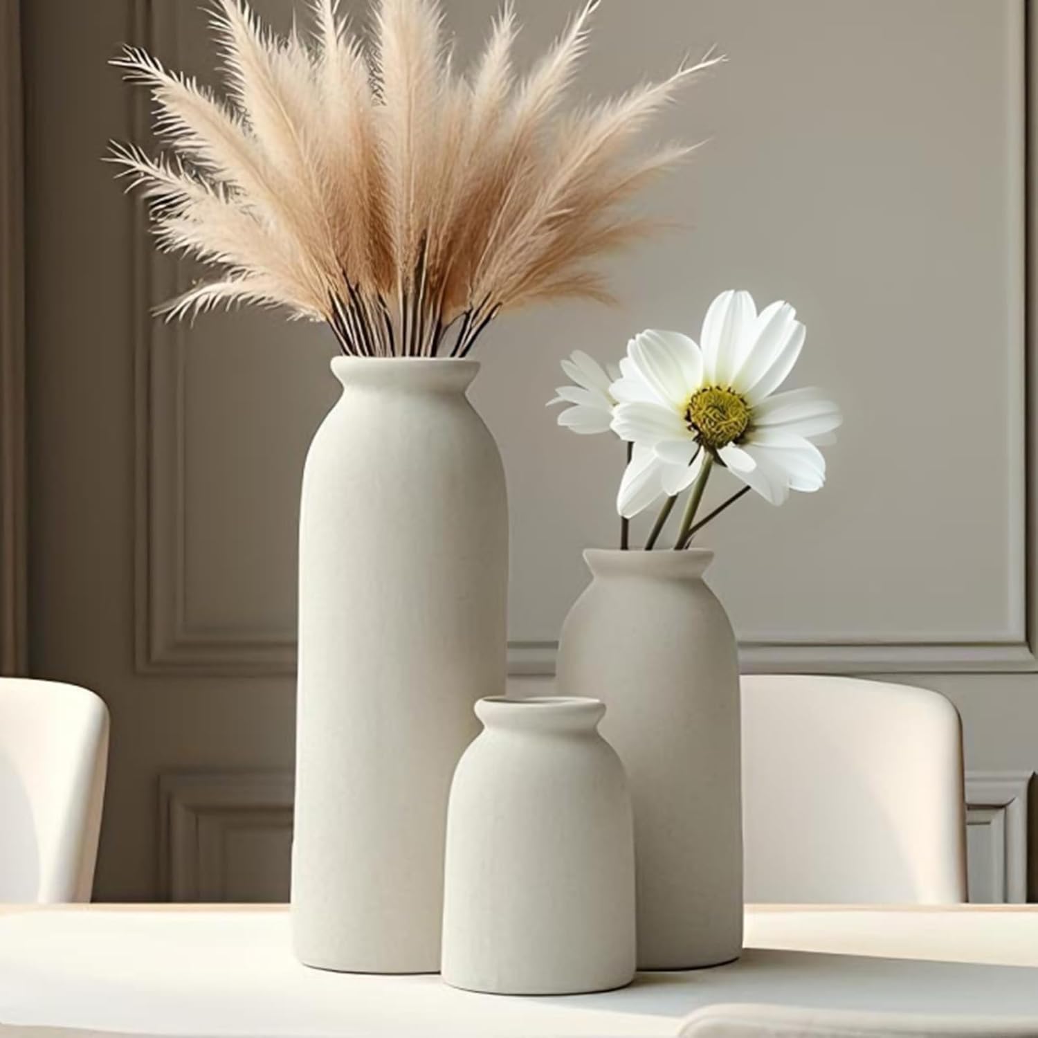 Ceramic Vase Set-3, Small Flower Vases for Decor, Modern Boho Farmhouse Style, Decorative Vases for Pampas Grass & Dried Flowers, Distressed Finish (Beige)