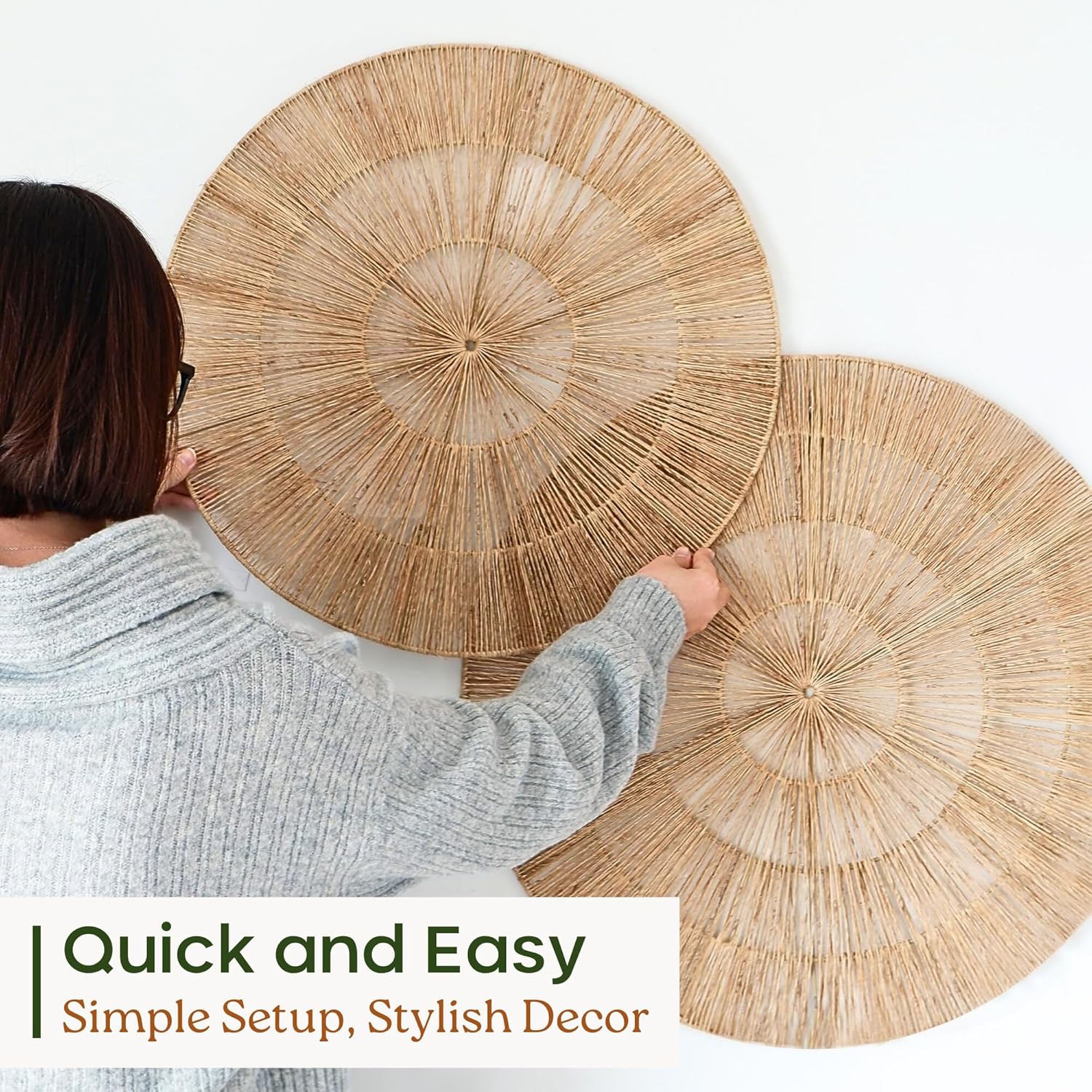 CHI AN HOME Wicker 23 Inch Jute Wall Decor Baskets, Set of 6 Extra Large Woven Jute Wall Plates, 23″,21″,15″,13″,12,10″, Decorative Baskets for Wall Arts, Wall Hanging for Bedroom, Living Room, Office