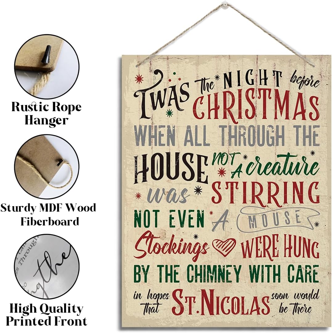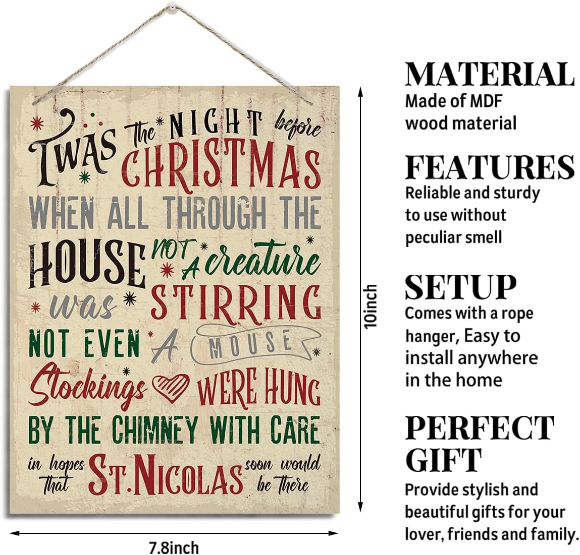 Christmas Wood Sign, Farmhouse Christmas Decor, Rustic Hanging Wood Plaque Sign, Home Decor for Xmas Holiday,Xmas Themed Wall Decoration