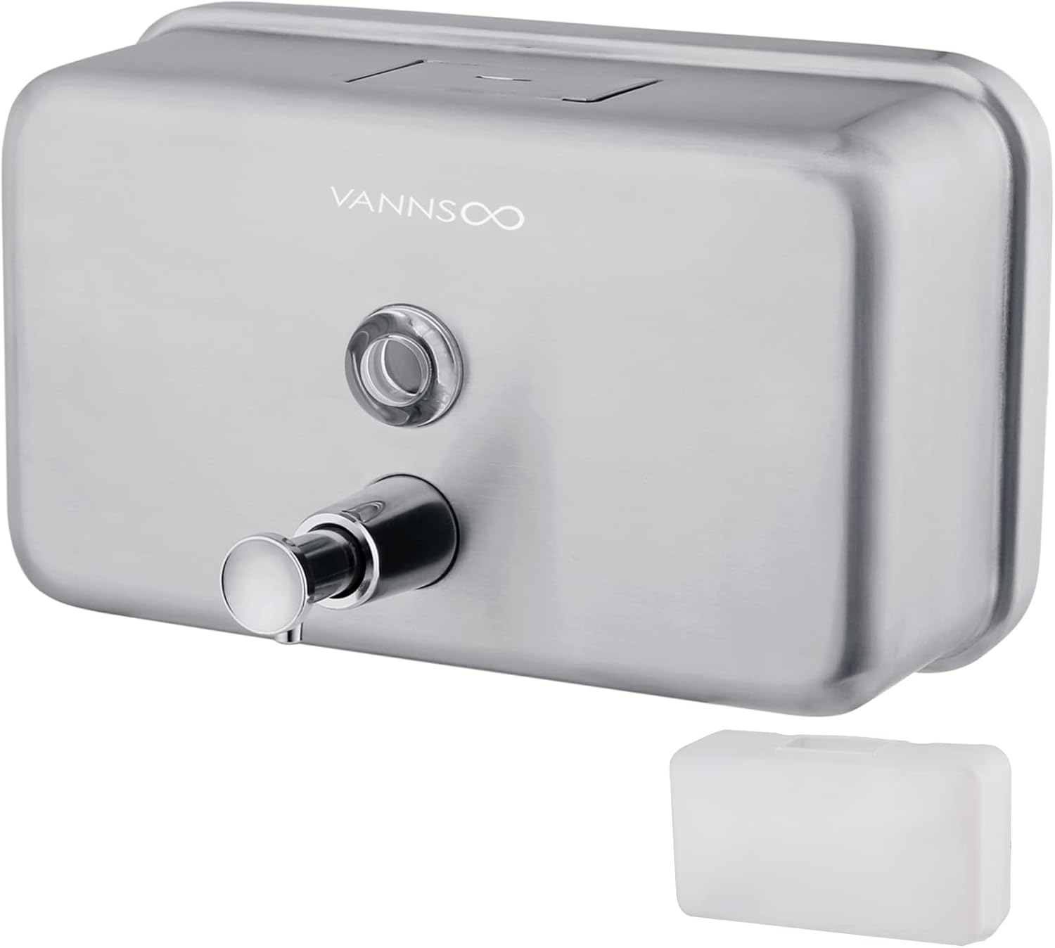 Commercial Wall Mount Stainless Steel Soap Dispenser, Rust-Proof Lining Liquid Hand Sanitizer Dispenser Bathroom 1100 ml / 37 oz. (Horizontal)
