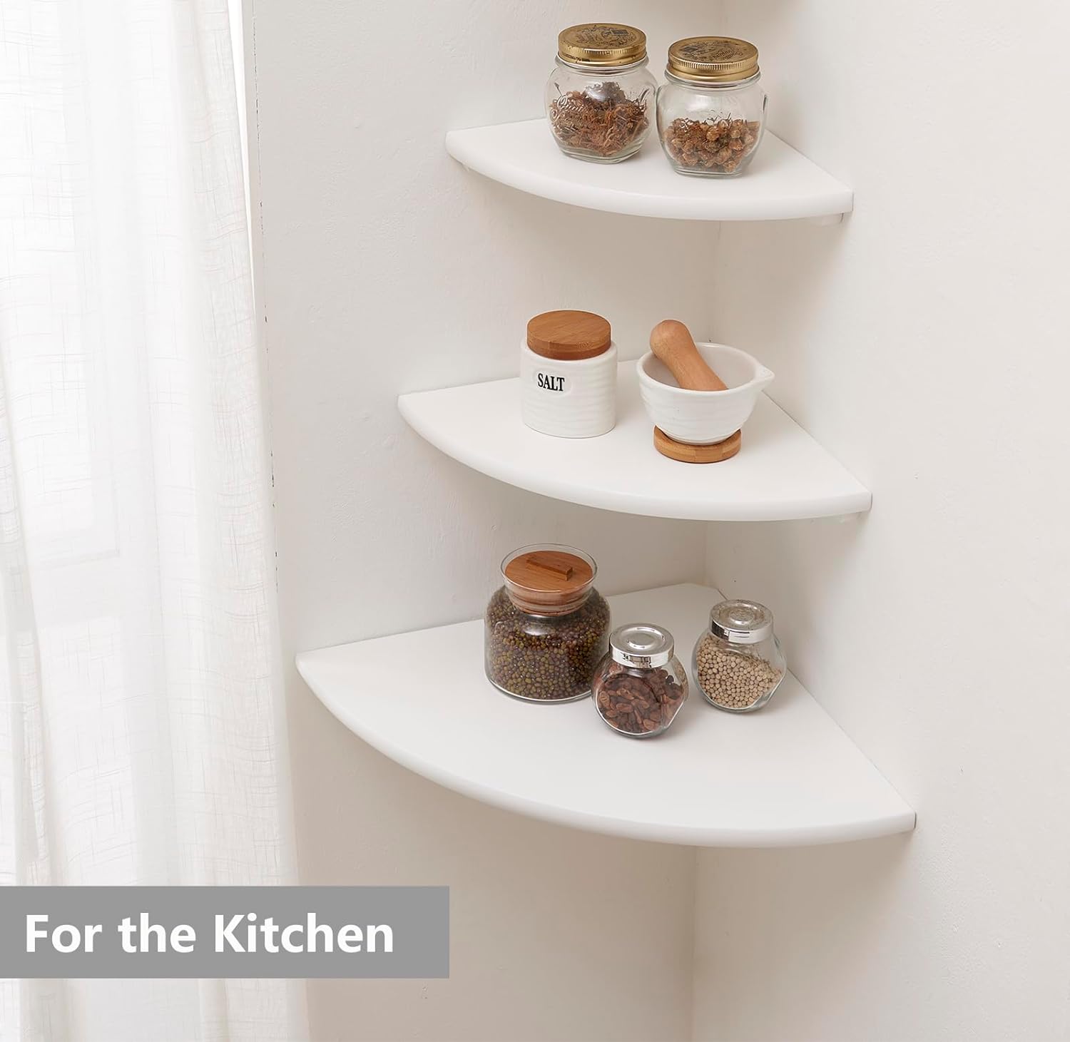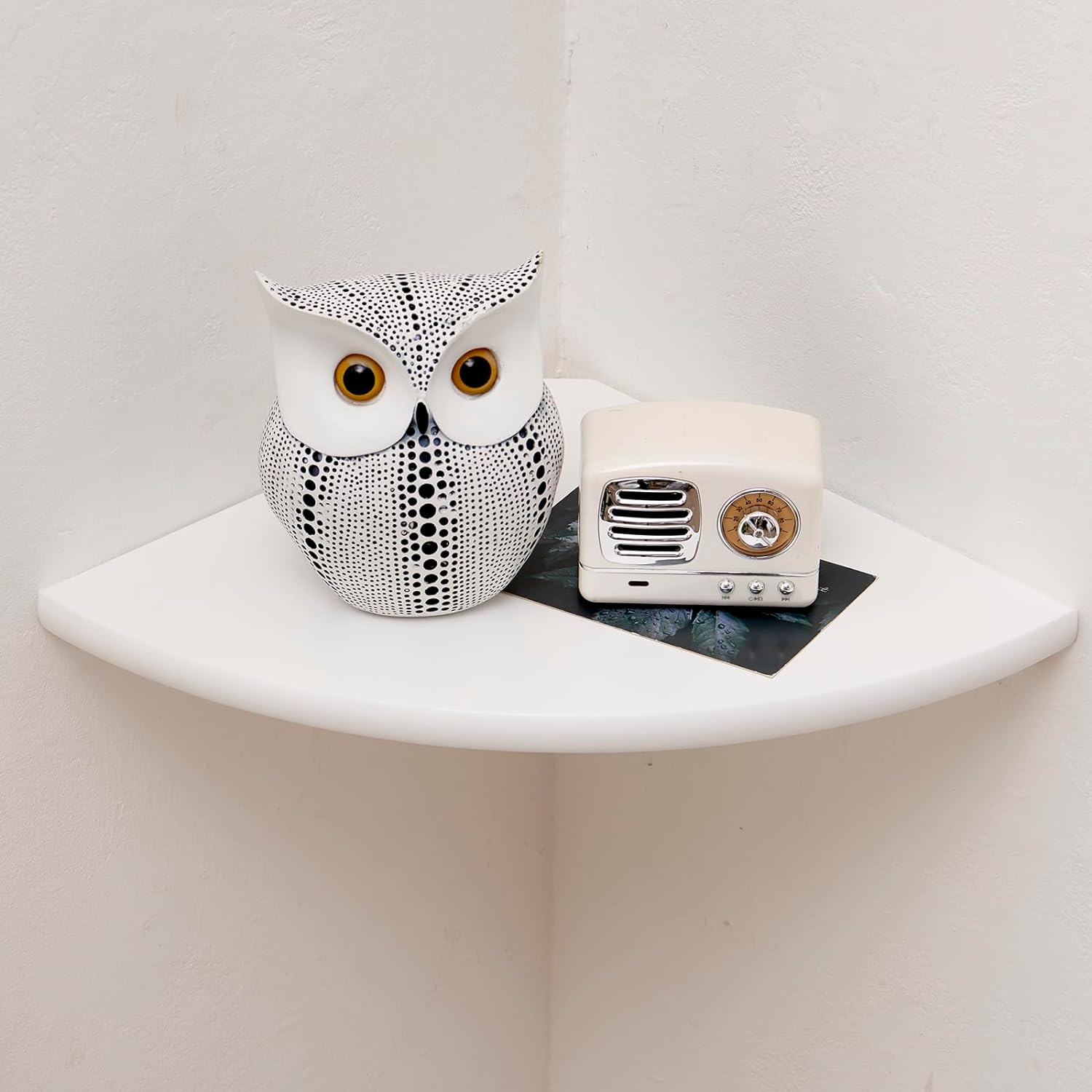 Corner Shelf, White Solid Oak Wood Floating Corner Shelves Wall Mount Round End Floating Speaker Rack Display Shelf for Small Plant Photo Frame (White, 7in)