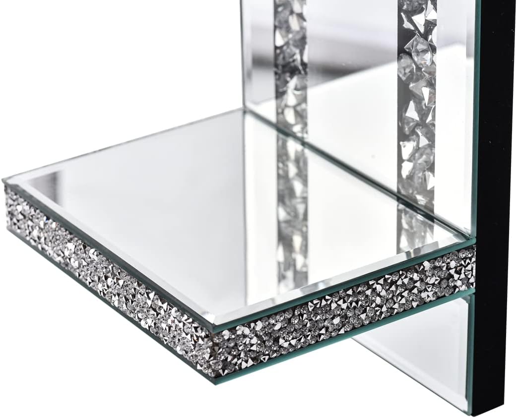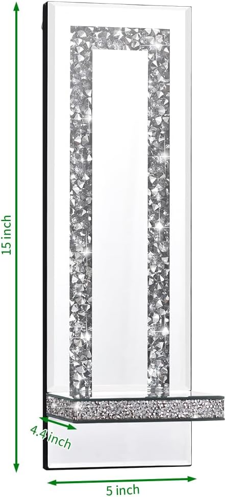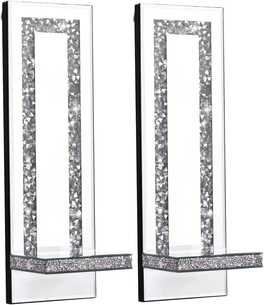 Crystal Crush Diamond Mirrored Candle Sconces, Silver Wall Candle holder set of 2, Wall decorations for Living Room,Dining Room (Rectangle Stripe (style 4))