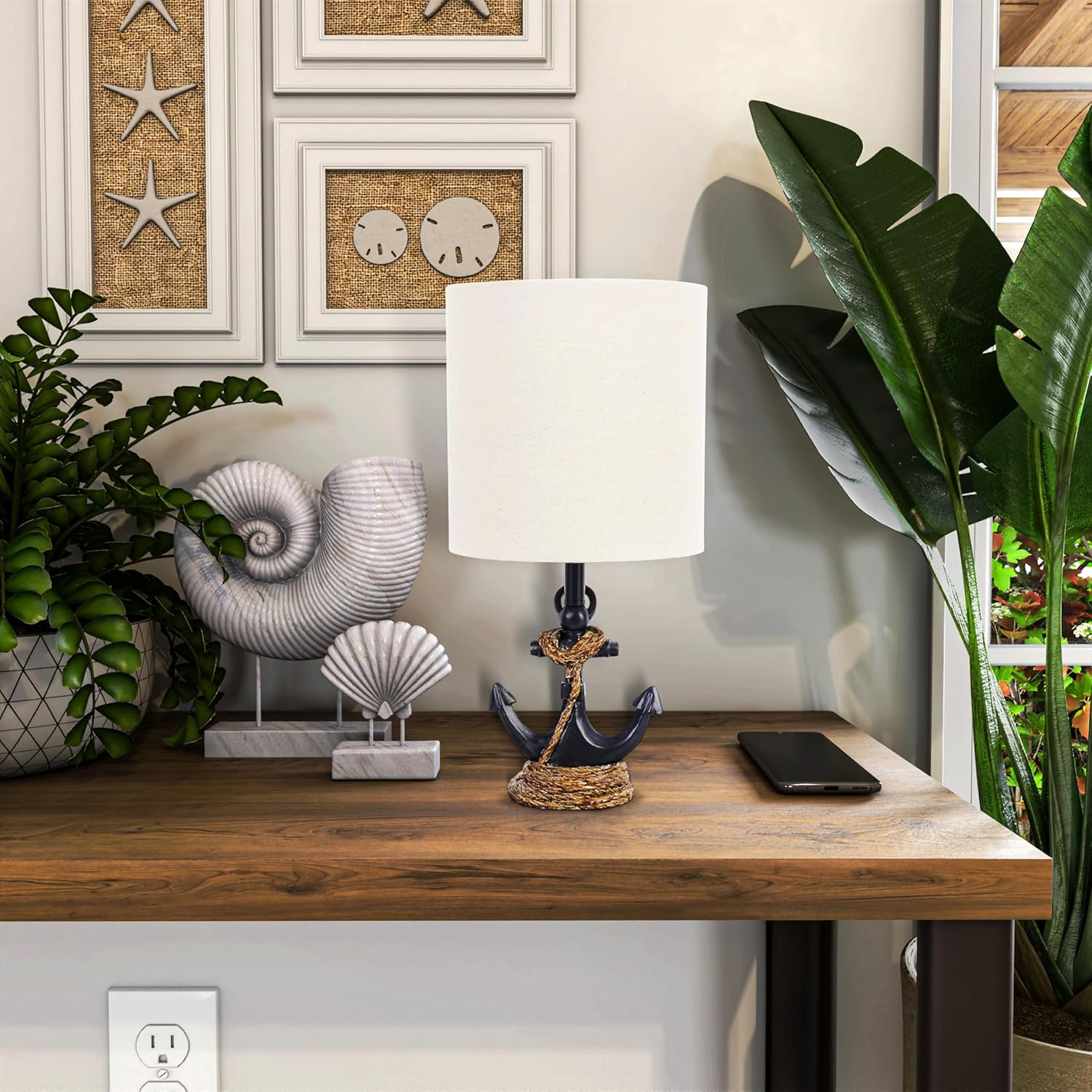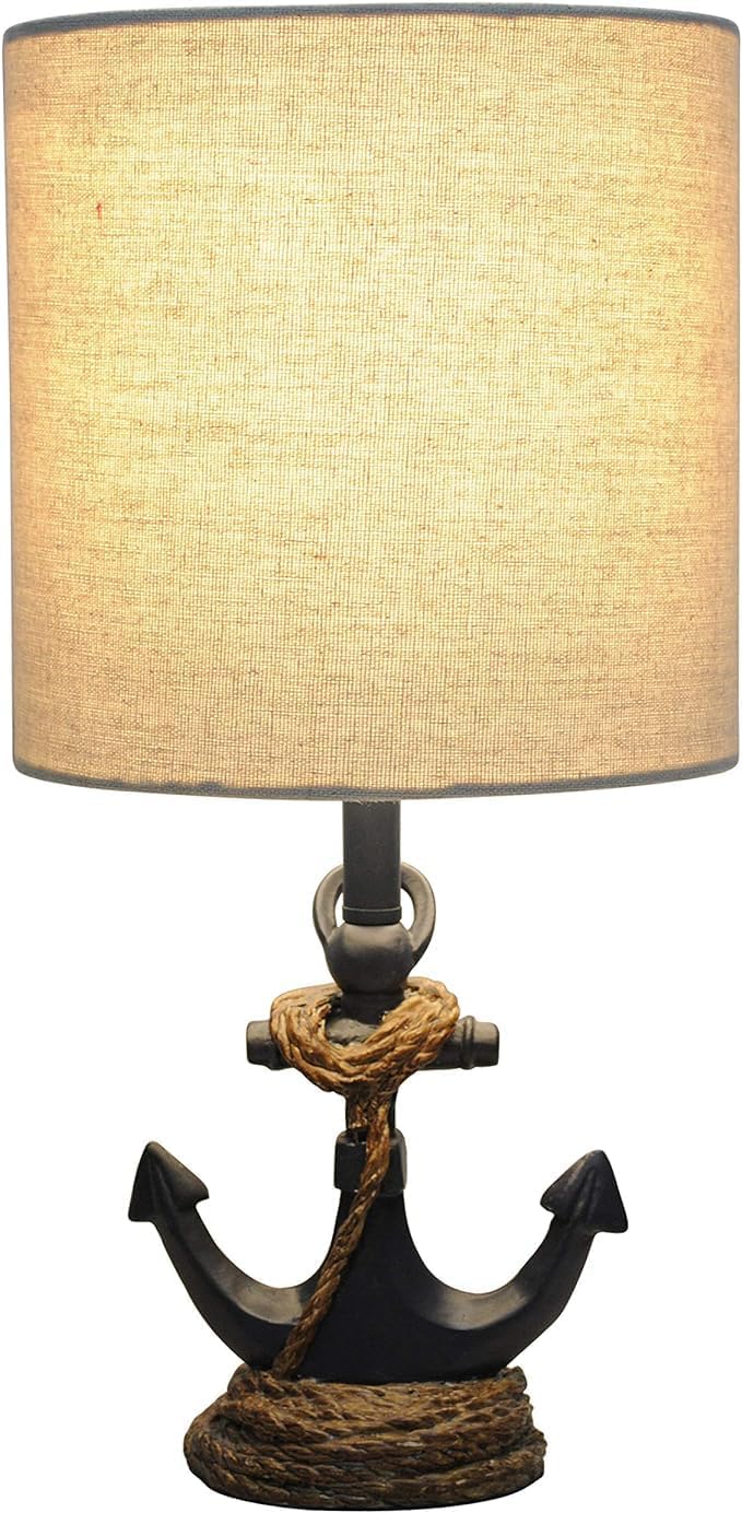 Decor Therapy Anchor Resin Accent Lamp, Easy on/Off Push-Through Light Switch, Coastal Style, Energy Efficient, 40W, Antique Navy – (8″ D x 8″ W x 16″ H)