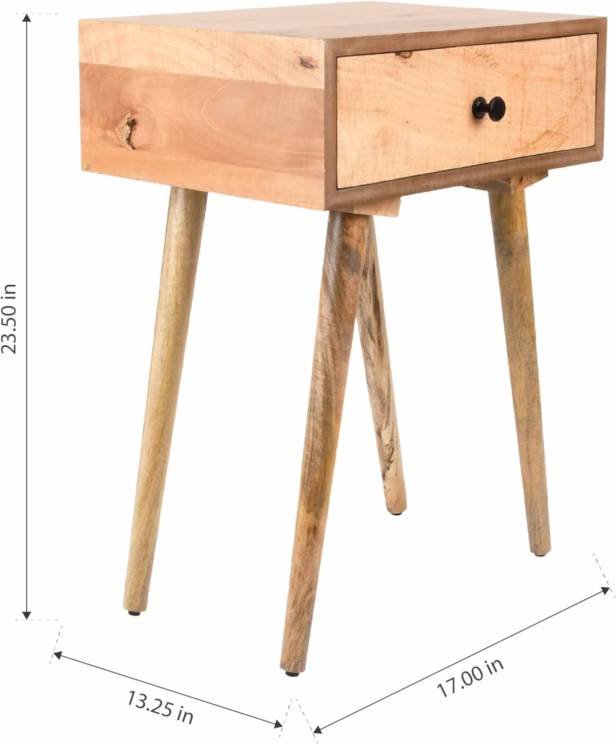 Decor Therapy Side Table with 1-Drawer, Modern Design, Easy Assemble, Natural -23.5″ x 17.75″ x 13.75″
