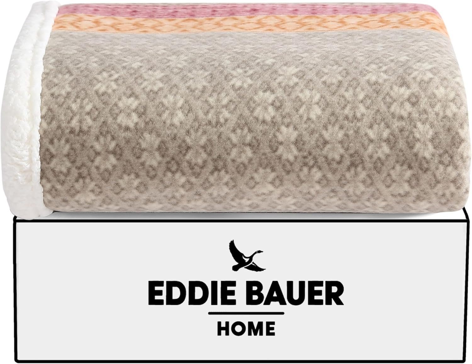 Eddie Bauer – Blanket, Super Soft Reversible Sherpa & Brushed Fleece Bedding, Ideal Throw Blankets for Couch, Plaid Home Design (Nordic Raisin)
