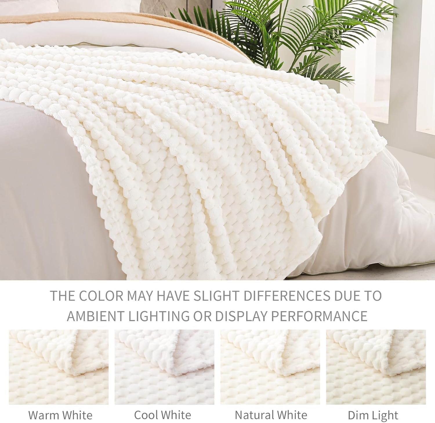 Exclusivo Mezcla Fleece Throw Blanket for Couch, Extra Large Fuzzy Ivory Bed Blankets, Soft Cozy Plush Sofa Throws for All Seasons, 50×70 Inches
