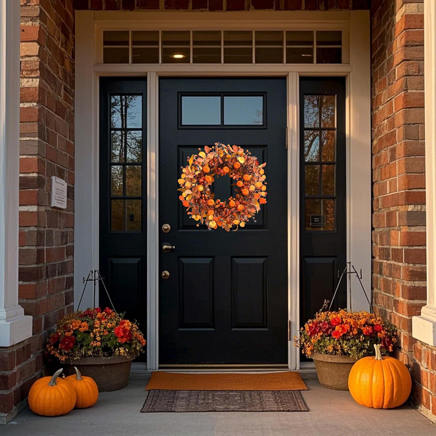 Fall Wreath 22 Inch Fall Wreaths for Front Door Autumn Pumpkin Wreaths with Orange Eucalyptus Leaves and Berries for Indoor Outdoor Thanksgiving Harvest Festival Celebrations
