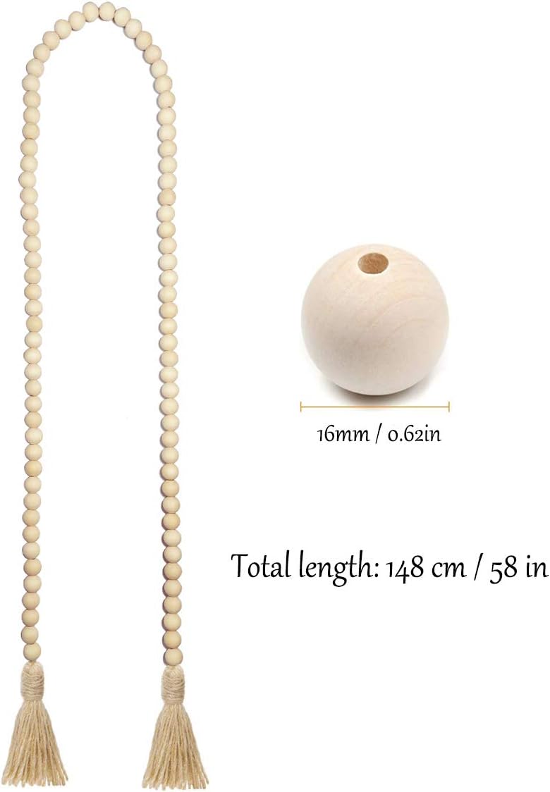 Farmhouse Beads 58in Wood Bead Boho Tassel Garland – Rustic Country Boho Chic Decor for Wall, Above Cabinet & Table