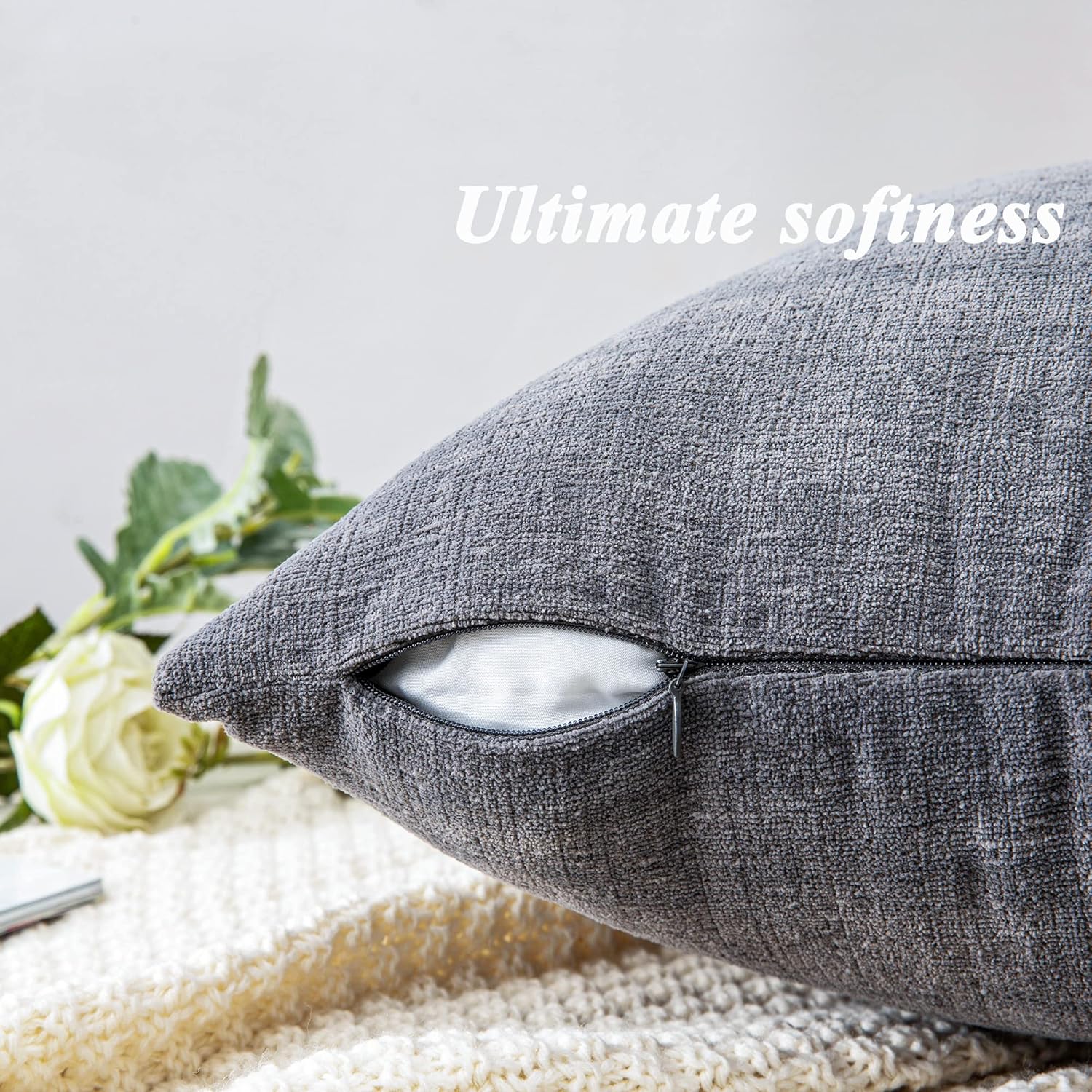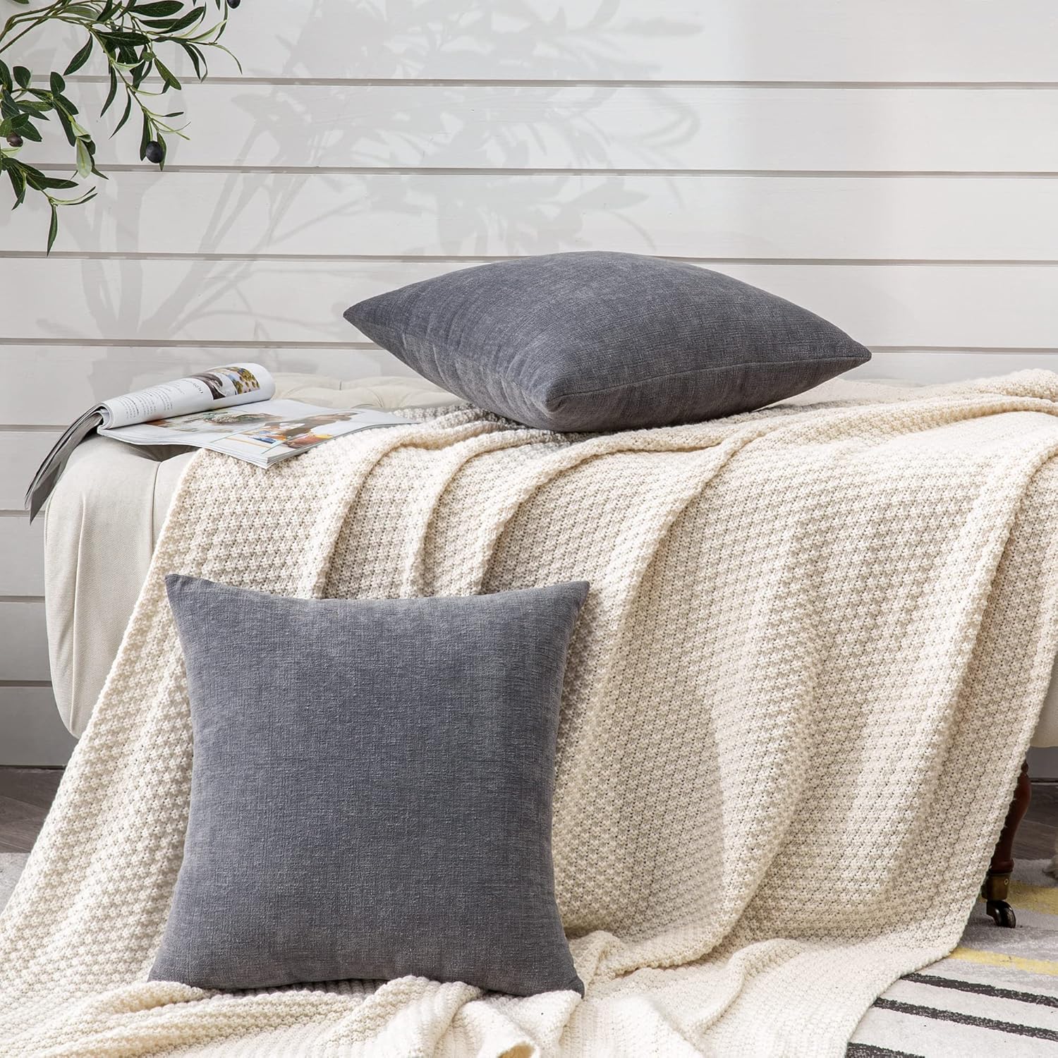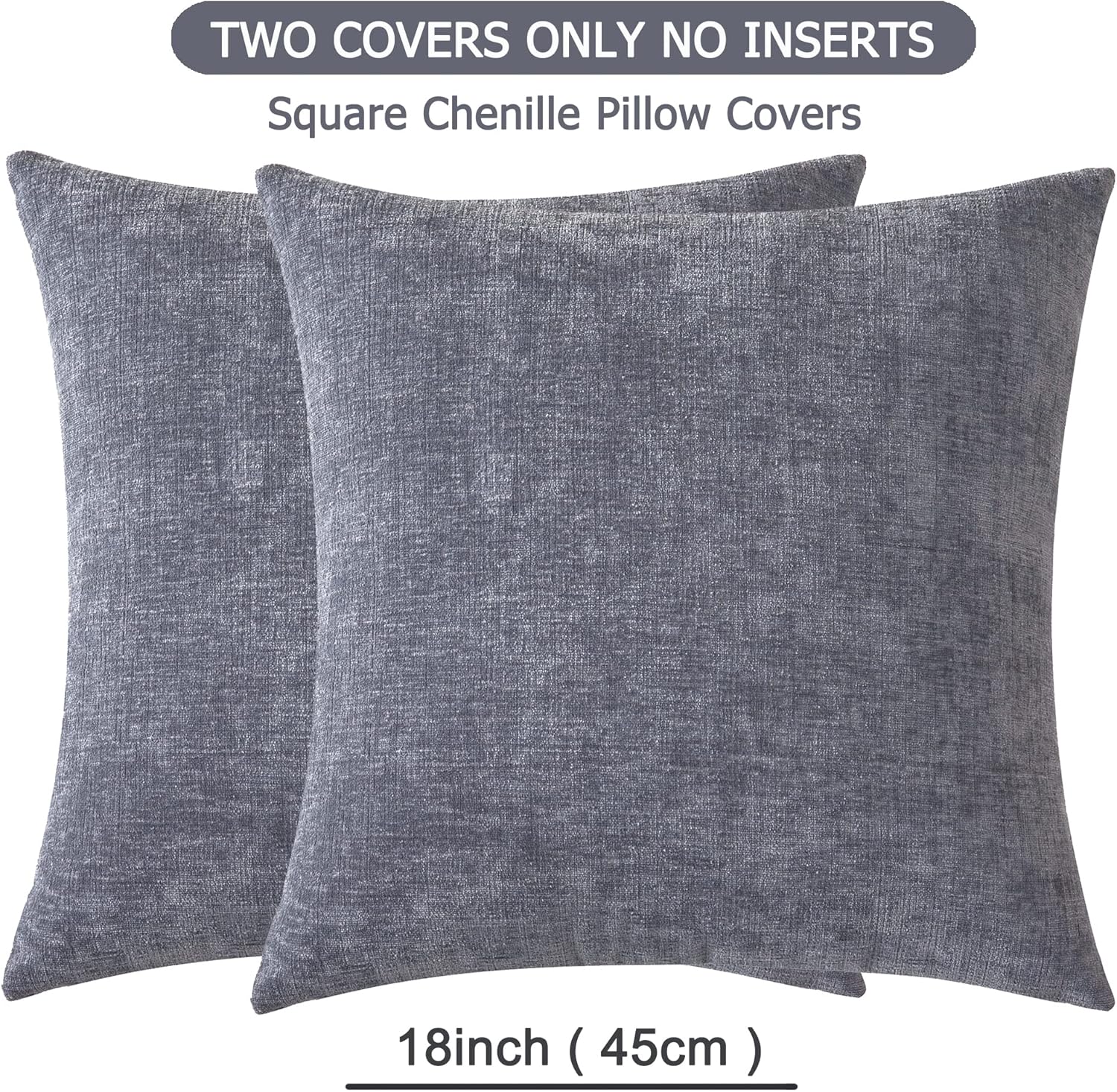 GAWAMAY Decorative Square Throw Pillow Covers 18″x18″ Inch Set of 2, Super Soft Chenille Pillows Farmhouse Fall Pillowcase for Living Room Bedroom Sofa Couch Cushion Cover Grey 45x45cm (No Insert)