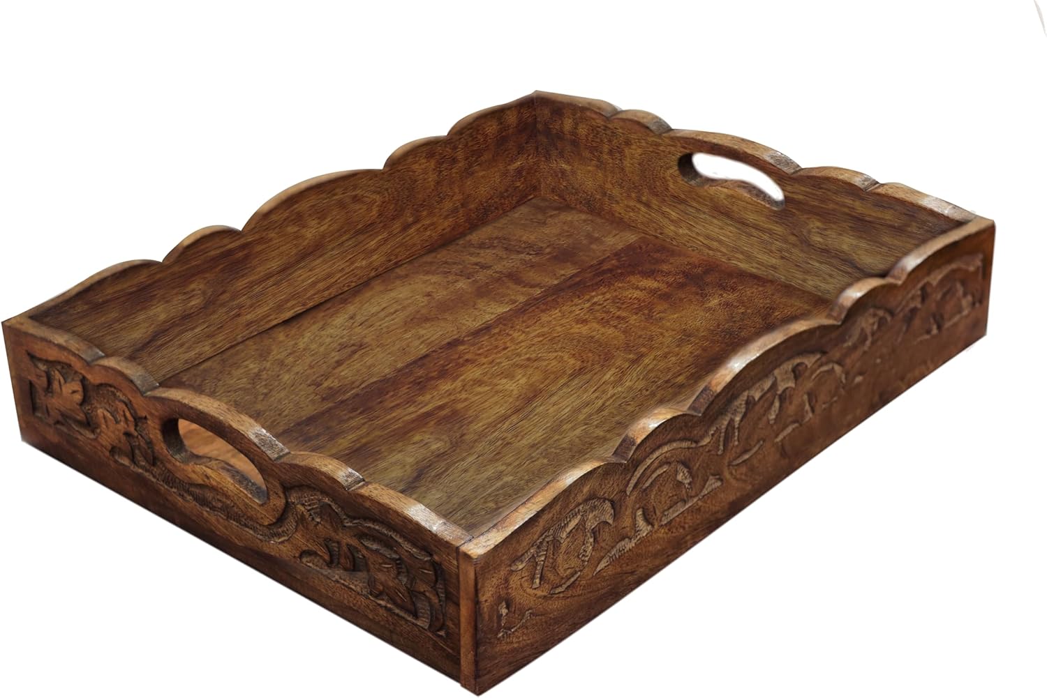 Hand Carved Wooden Serving Tray – Decorative Breakfast Tray with Handles – Rustic Wooden Food Tray with Intricate Detail – Unique Furnishing Accent – Natural Finish – 17 x 13 x 2.5 Inch – COTTON CRAFT