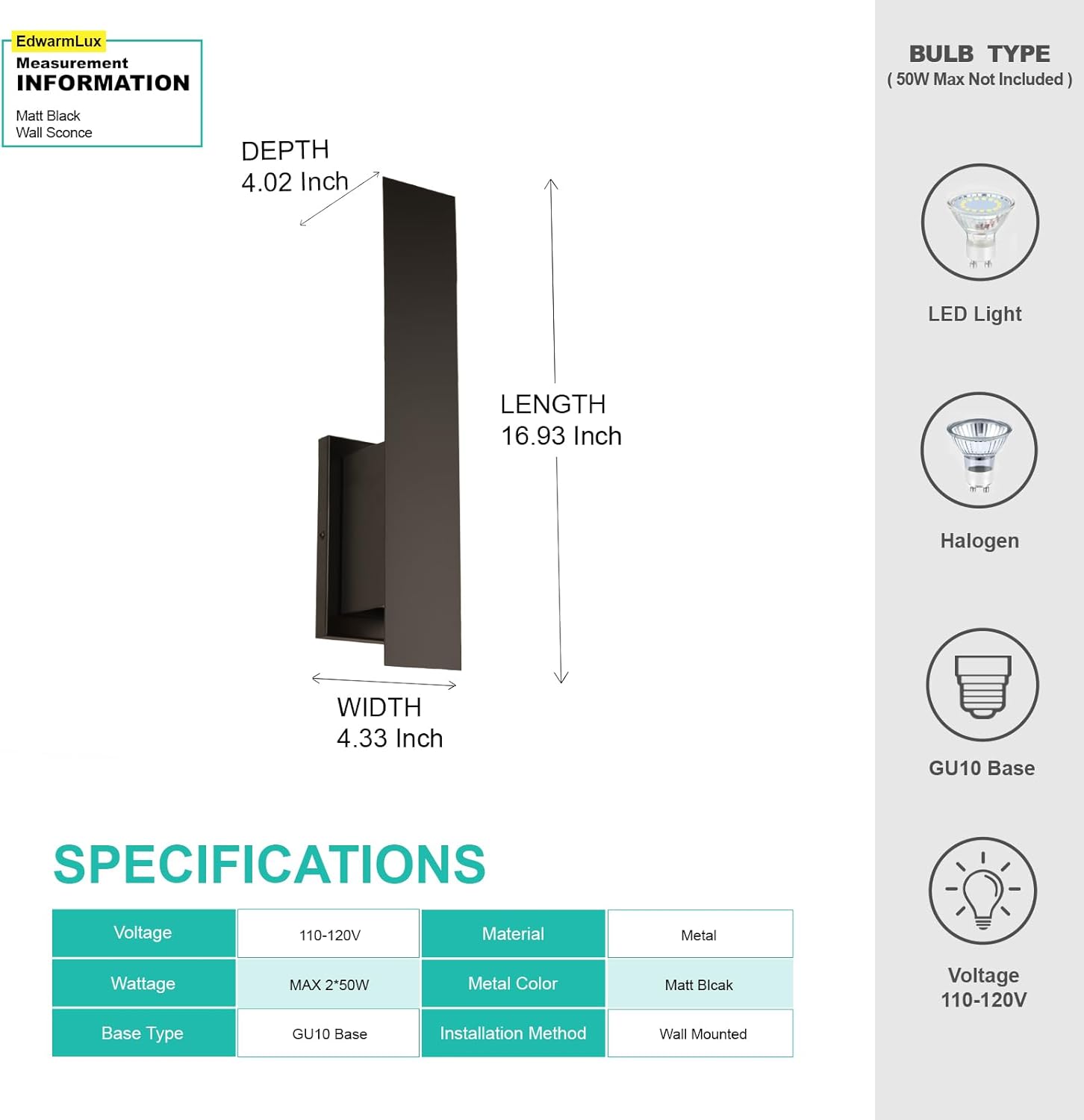 Indoor Wall Sconces, Modern Wall Lights, Up and Down Wall Mount Light, Dimmable Hardwired Wall Light for Bedroom, Living Room, Hallway, GU10 Bulbs Excluded, 2 Pack (Matt Black)