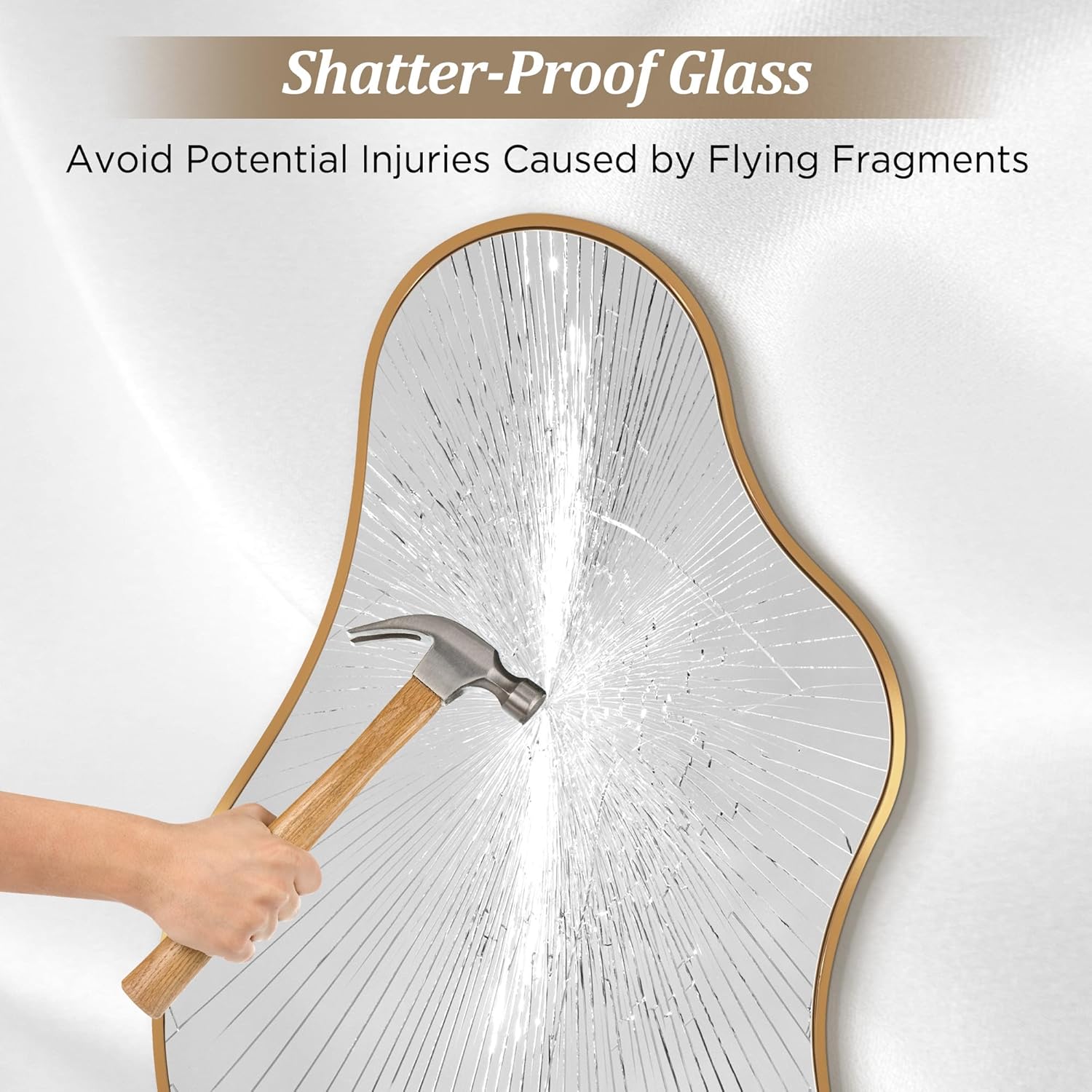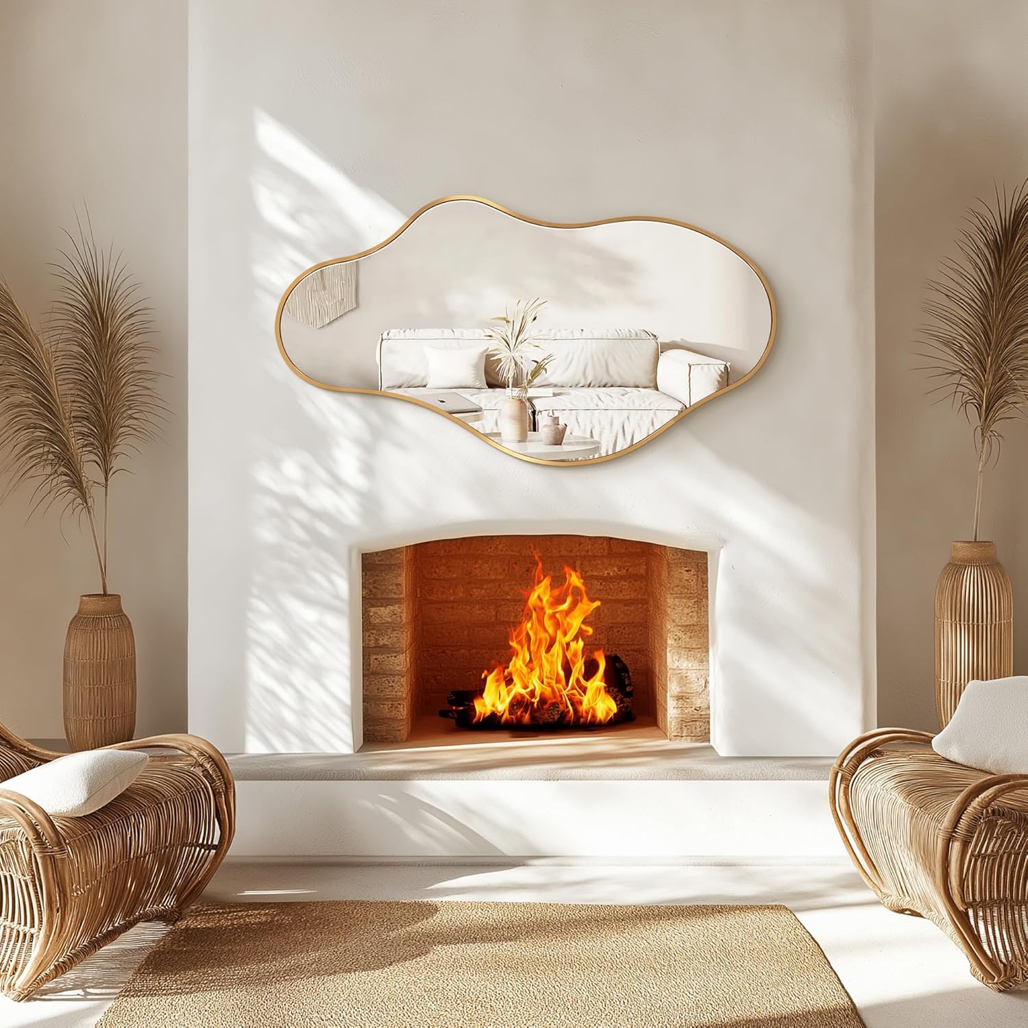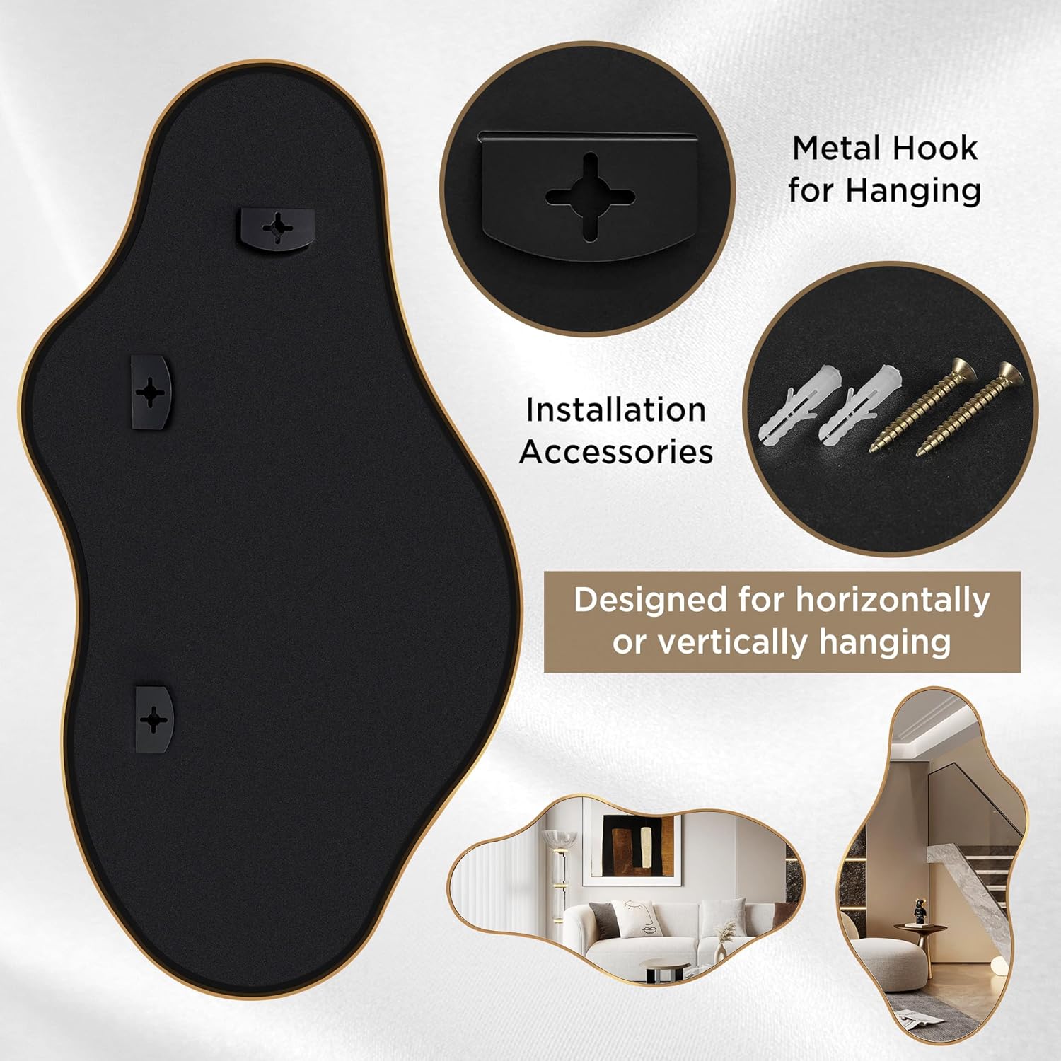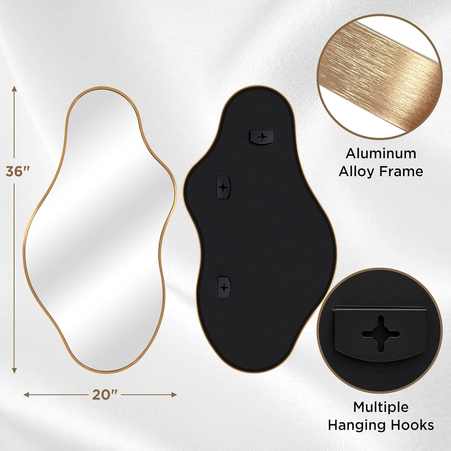 Irregular Wall Mirror, 20″x36″ Gold Abstract Asymmetrical Mirrors for Wall, Decorative Cloud Wavy Mirror for Bathroom, Bedroom, Cloakroom, Entryway, Shatter-Proof Aluminum Alloy Frame