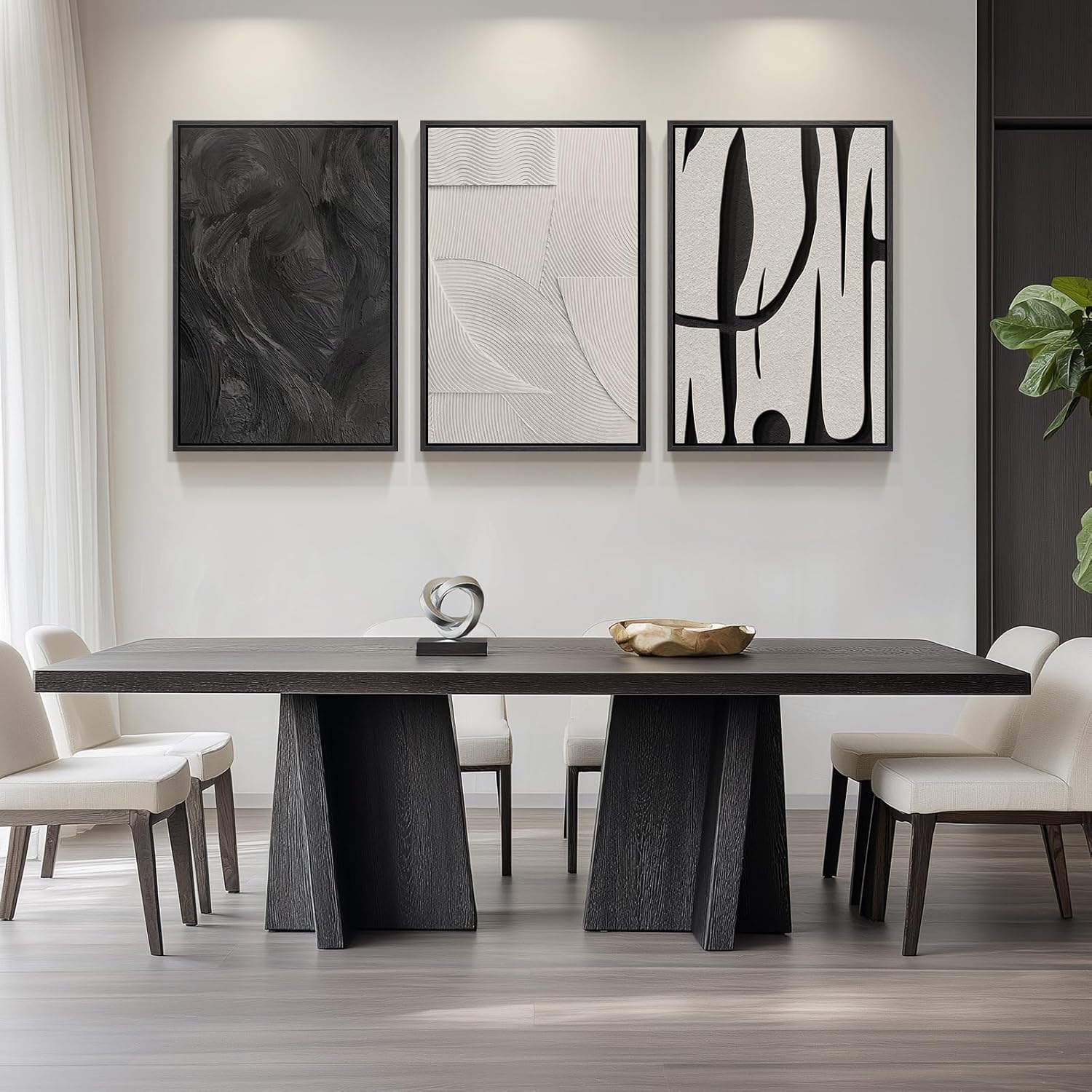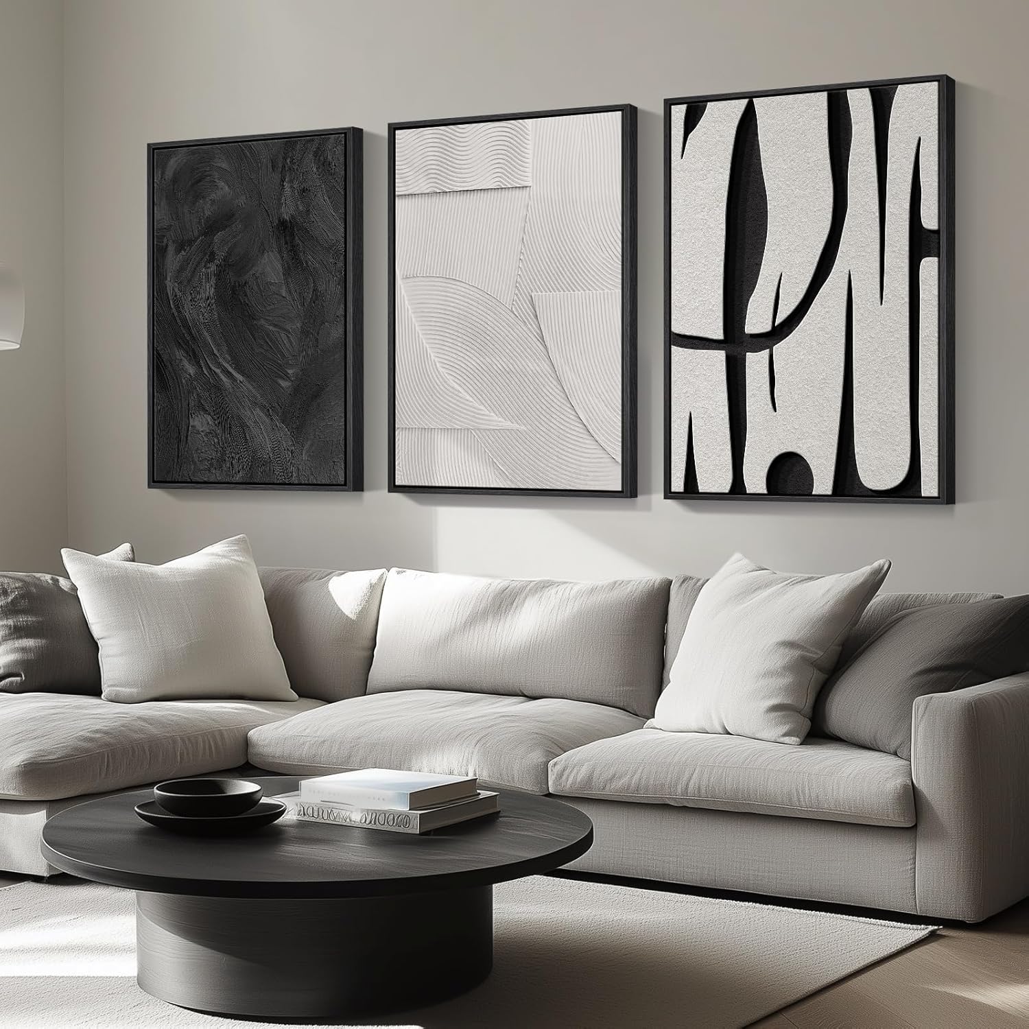 Large Framed Black and White Abstract Wall Art for Living Room, 3 Piece Big Modern Canvas Prints Paintings Artwork for Walls, Minimalist Abstract Art Pictures for Hallway, Office Wall Decor 24×36 In