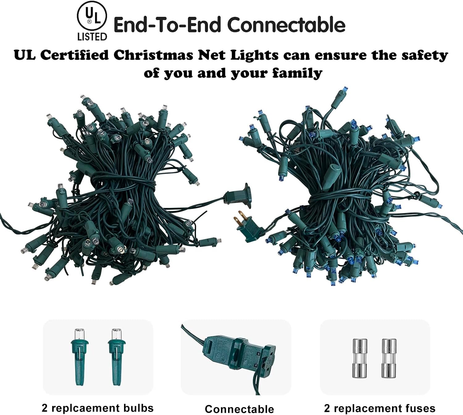 LED Christmas Net Lights Outdoor Christmas Decorations for Bushes,100LED 5ftx5ft Connectable Green Wire Net Christmas Lights for Outdoor indoor Yard Mesh Shrub Tree Decor ,UL Certified(Warm White)