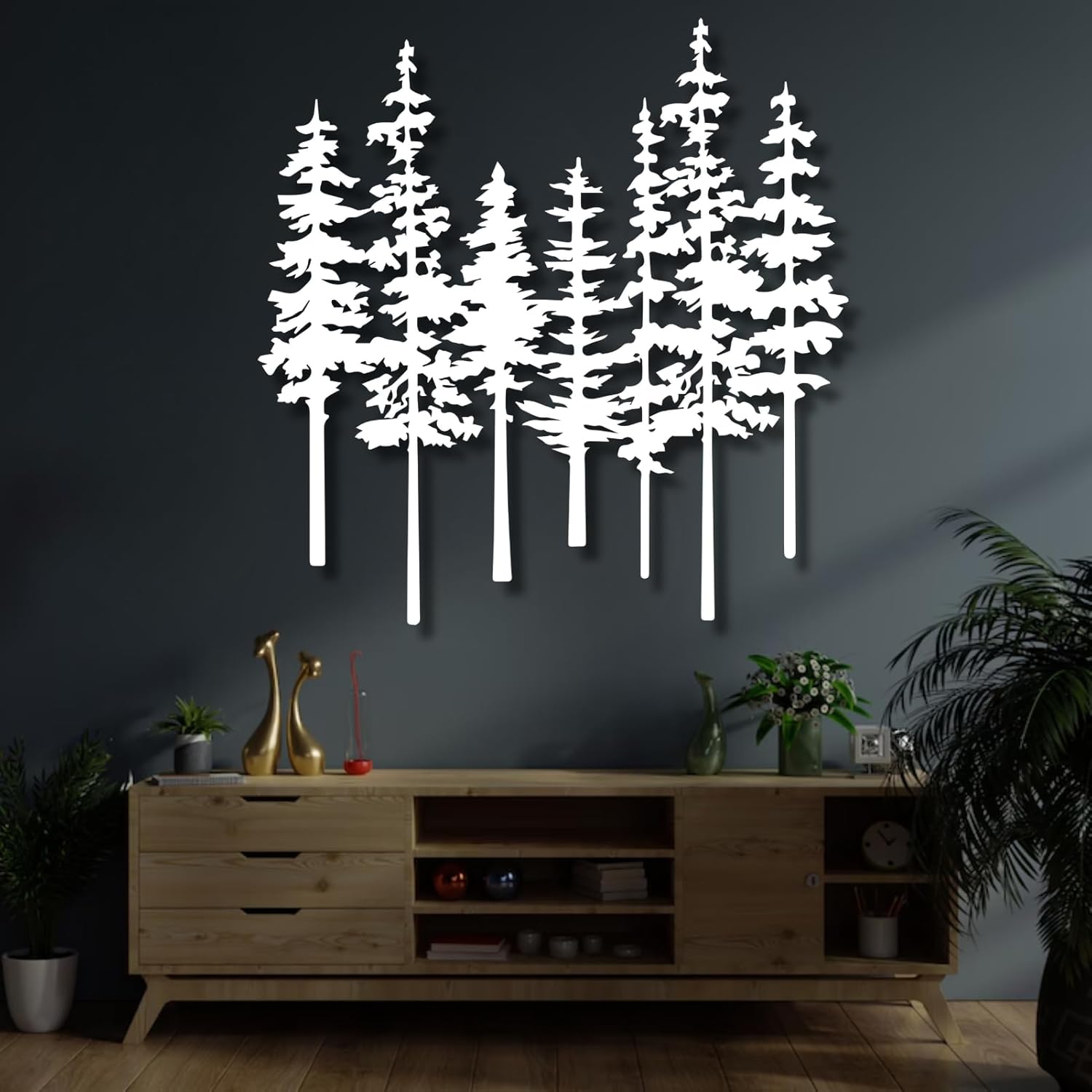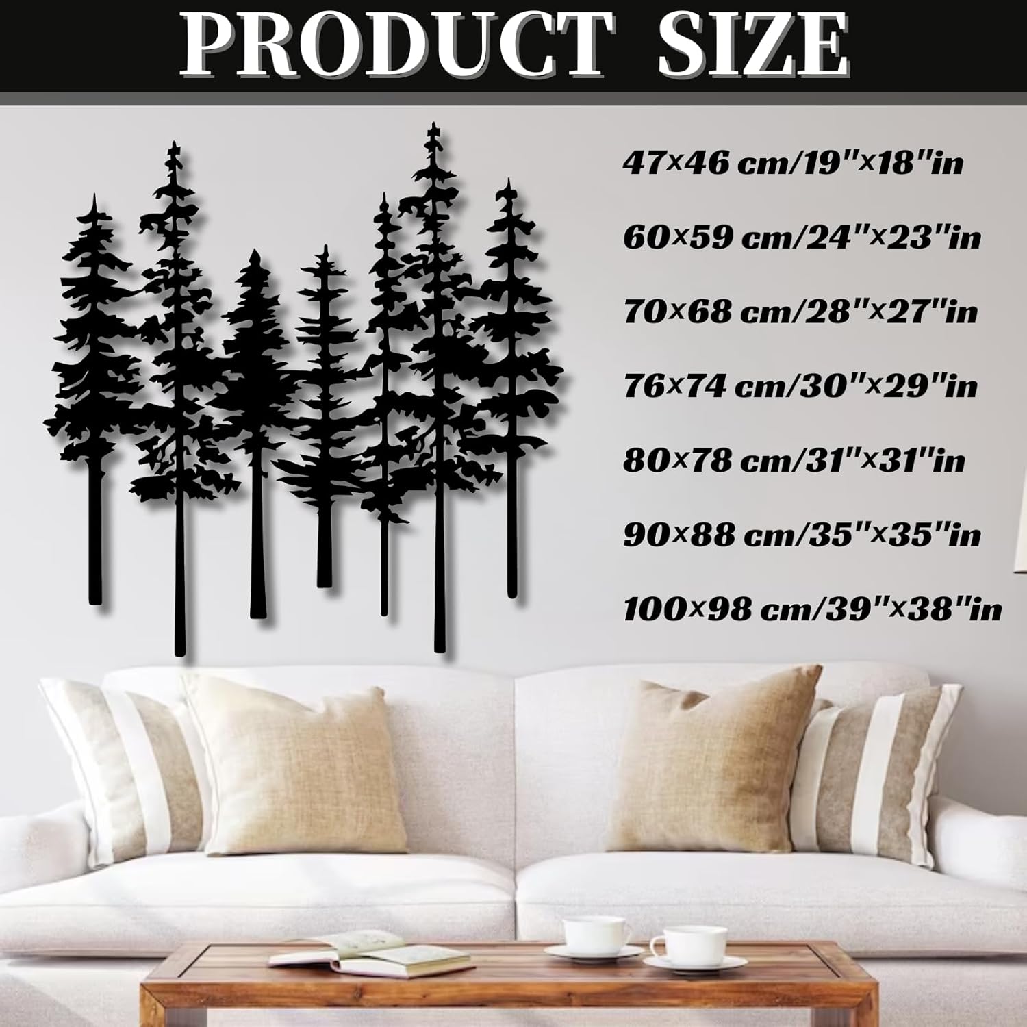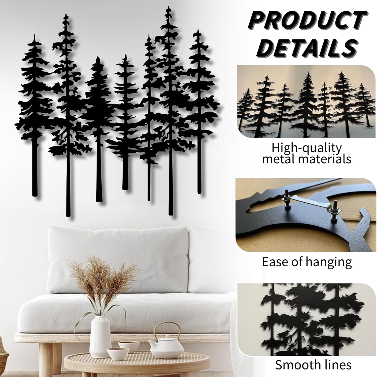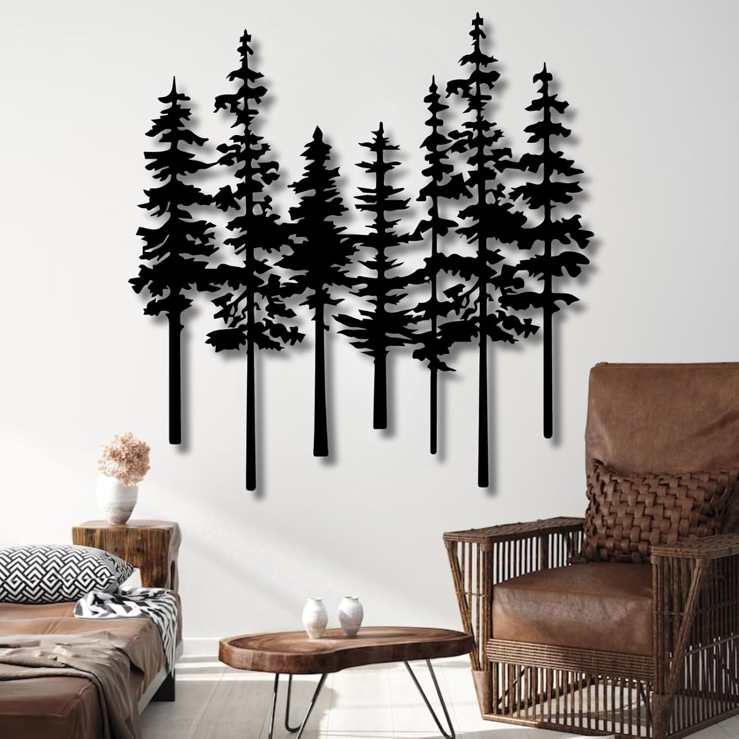 Mimiso Metal Pine Tree Wall Art,Pine Tree Wall Decor for Living Room,Dining, Bed Room,Nature Forest Metal Decor,Nature Lover Gift (Black,24″×23″)
