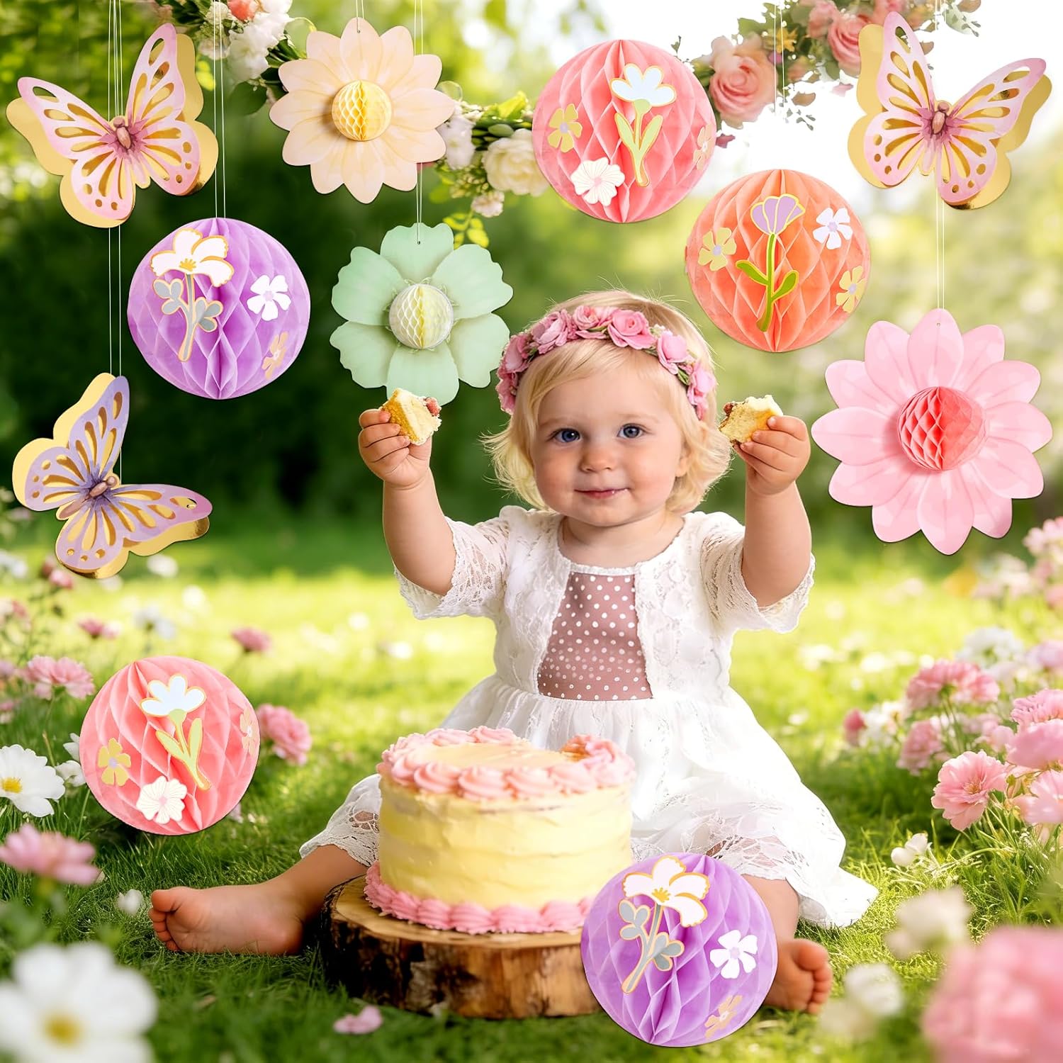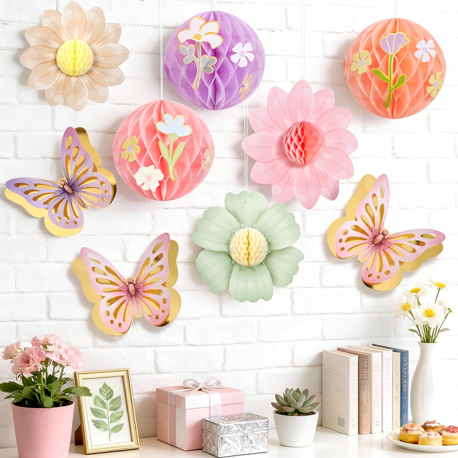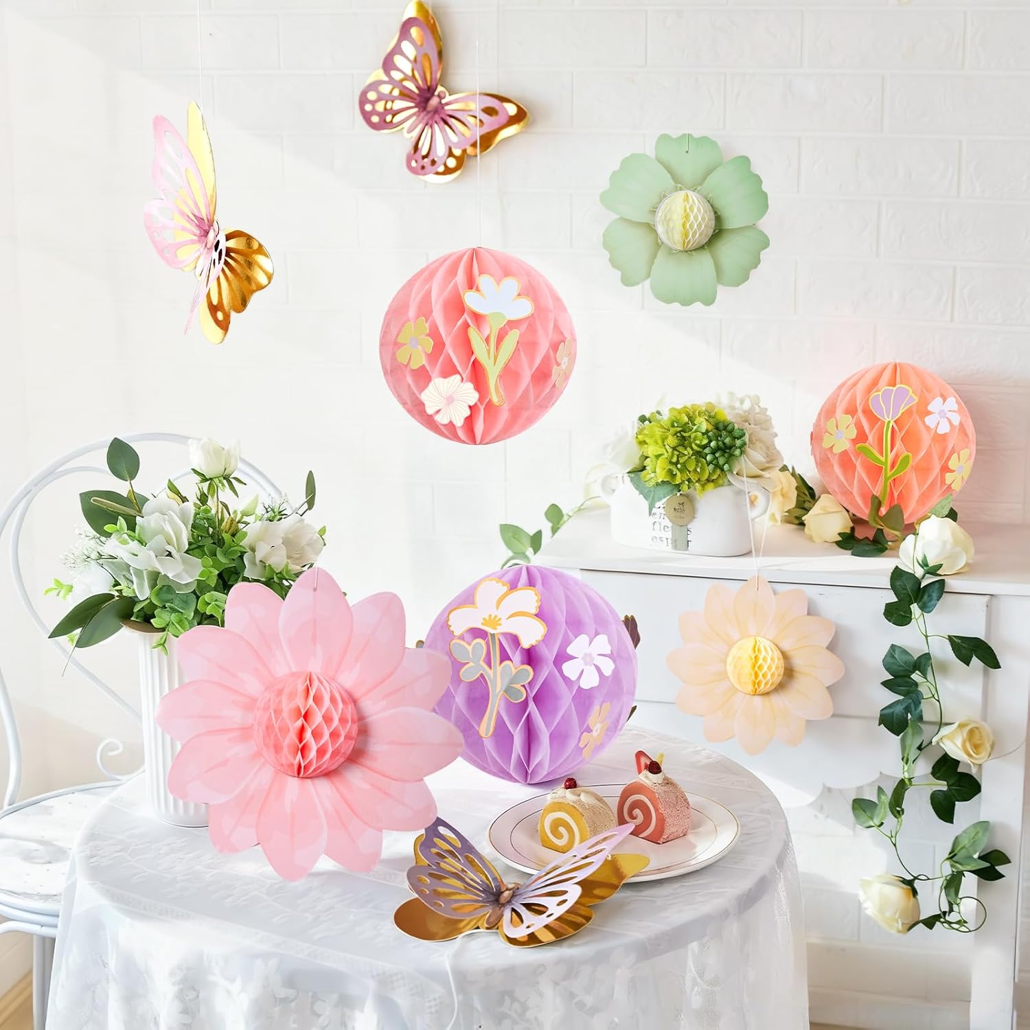 Paper Jazz Pastel Butterfly Decorations Hanging Paper Flowers Honeycomb Birthday for Fairy Party,Spring Theme Decor for Wildflower First Birthday,Tea,Garden Party,Classroom,Bulletin Board