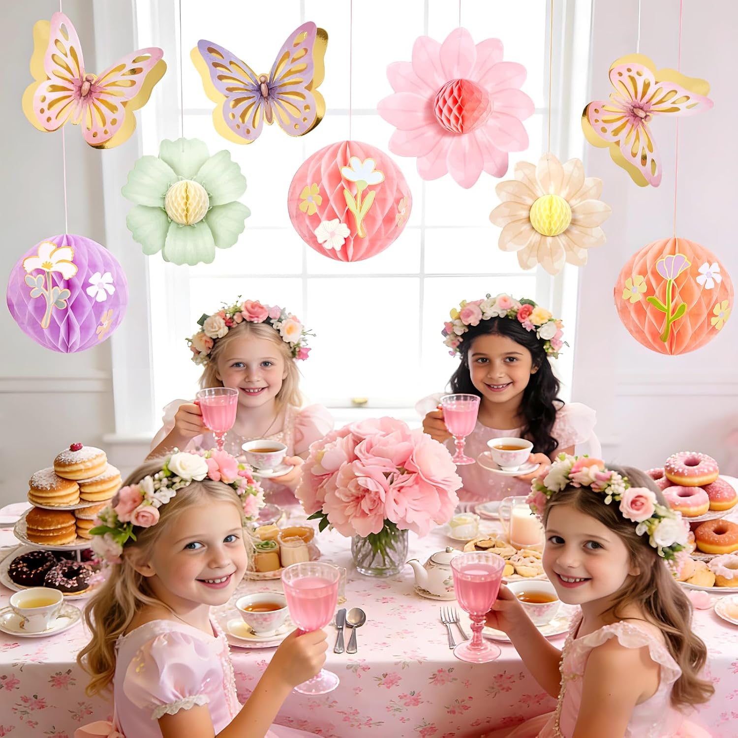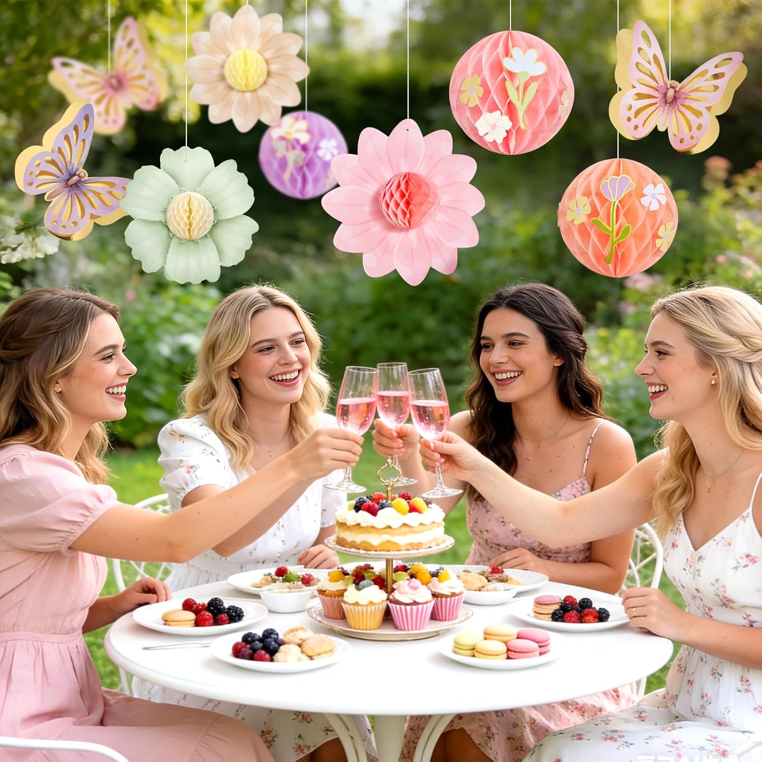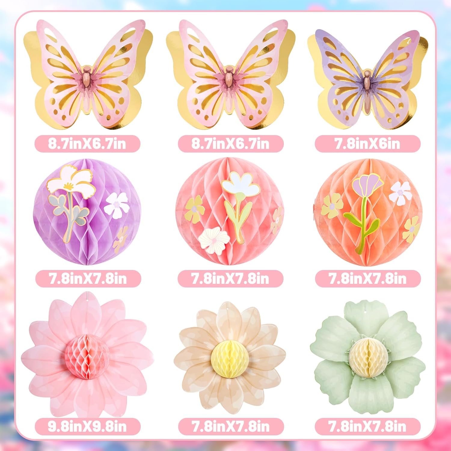 Paper Jazz Pastel Butterfly Decorations Hanging Paper Flowers Honeycomb Birthday for Fairy Party,Spring Theme Decor for Wildflower First Birthday,Tea,Garden Party,Classroom,Bulletin Board