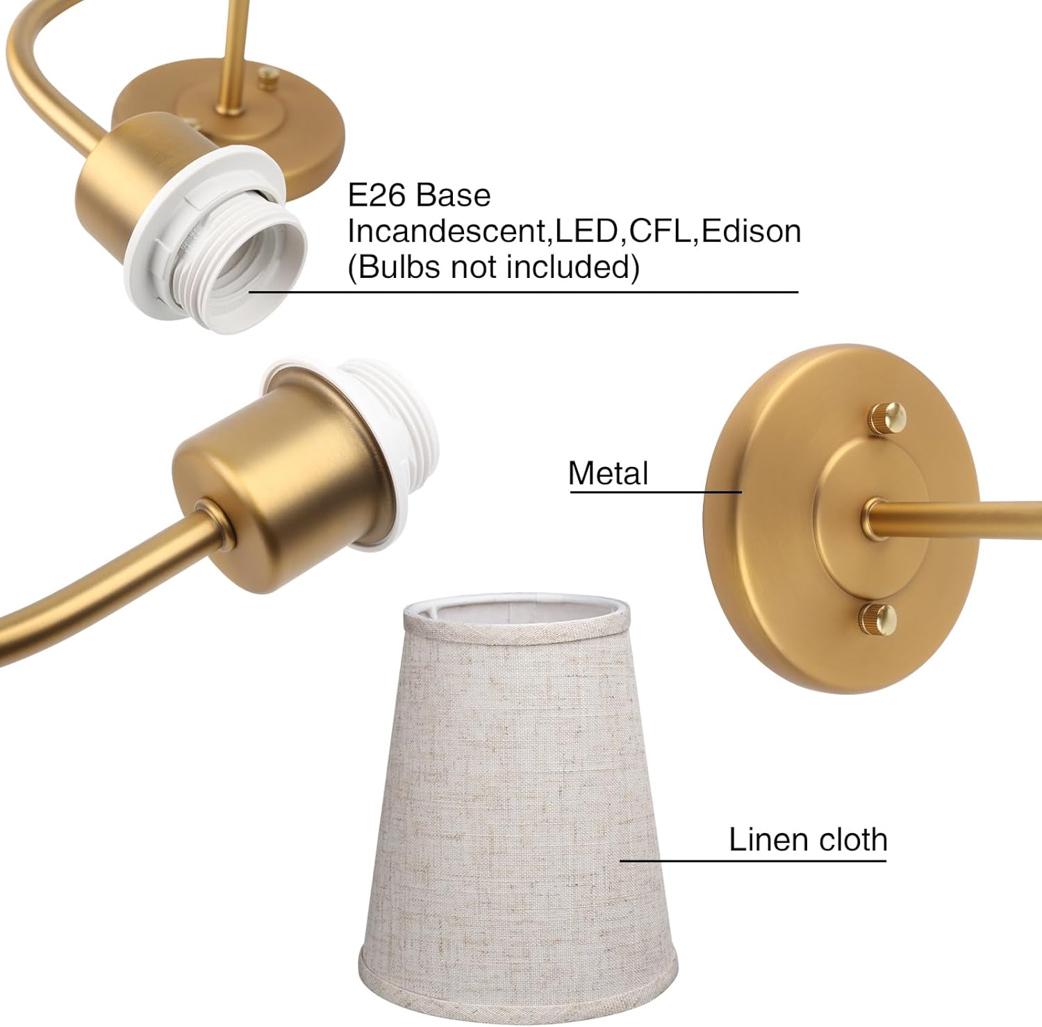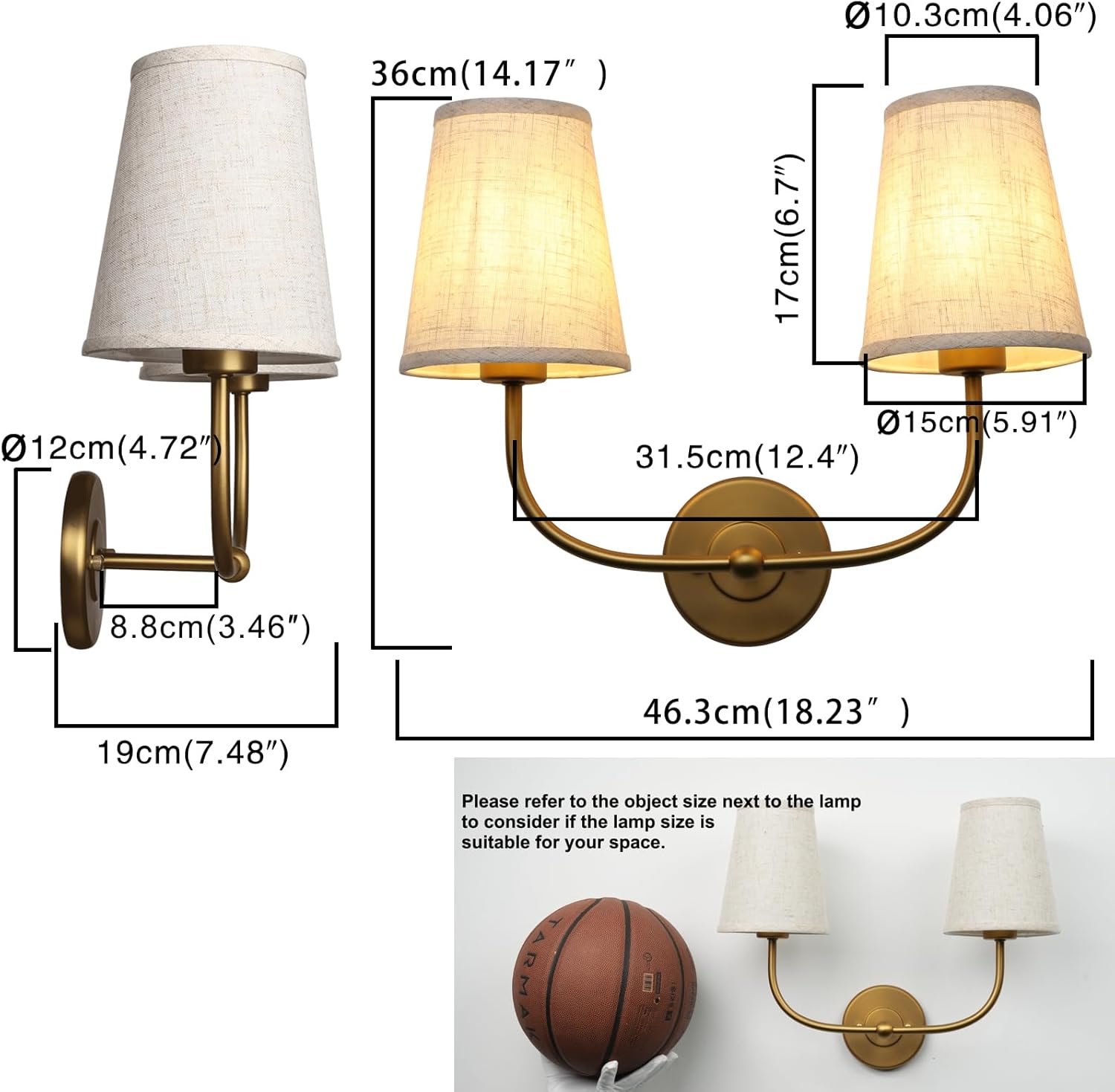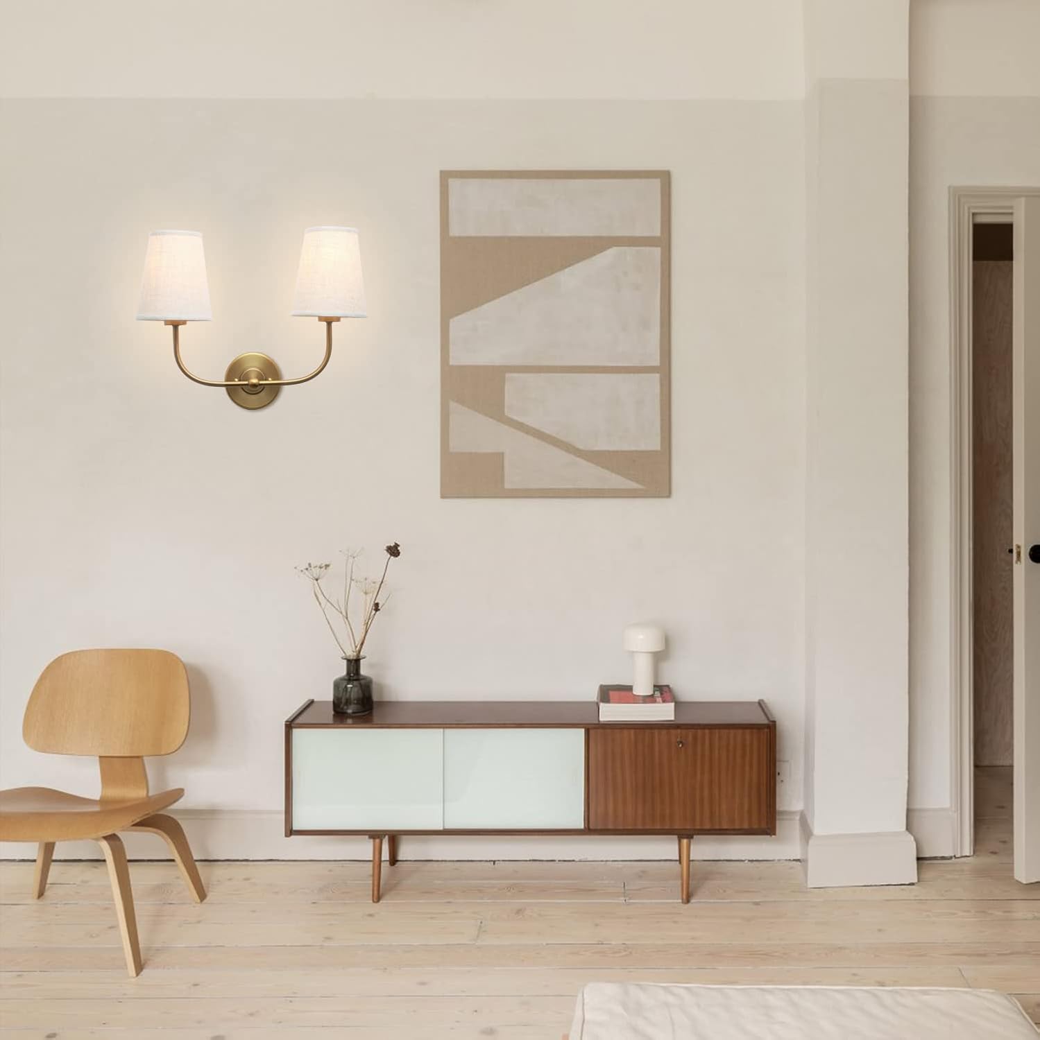 PERMO Vintage Double Sconce Large Antique 2-Lights Sconces with Flared Funnel Linen Beige Fabric Shade Hardwired Double Wall Sconce E26 Base