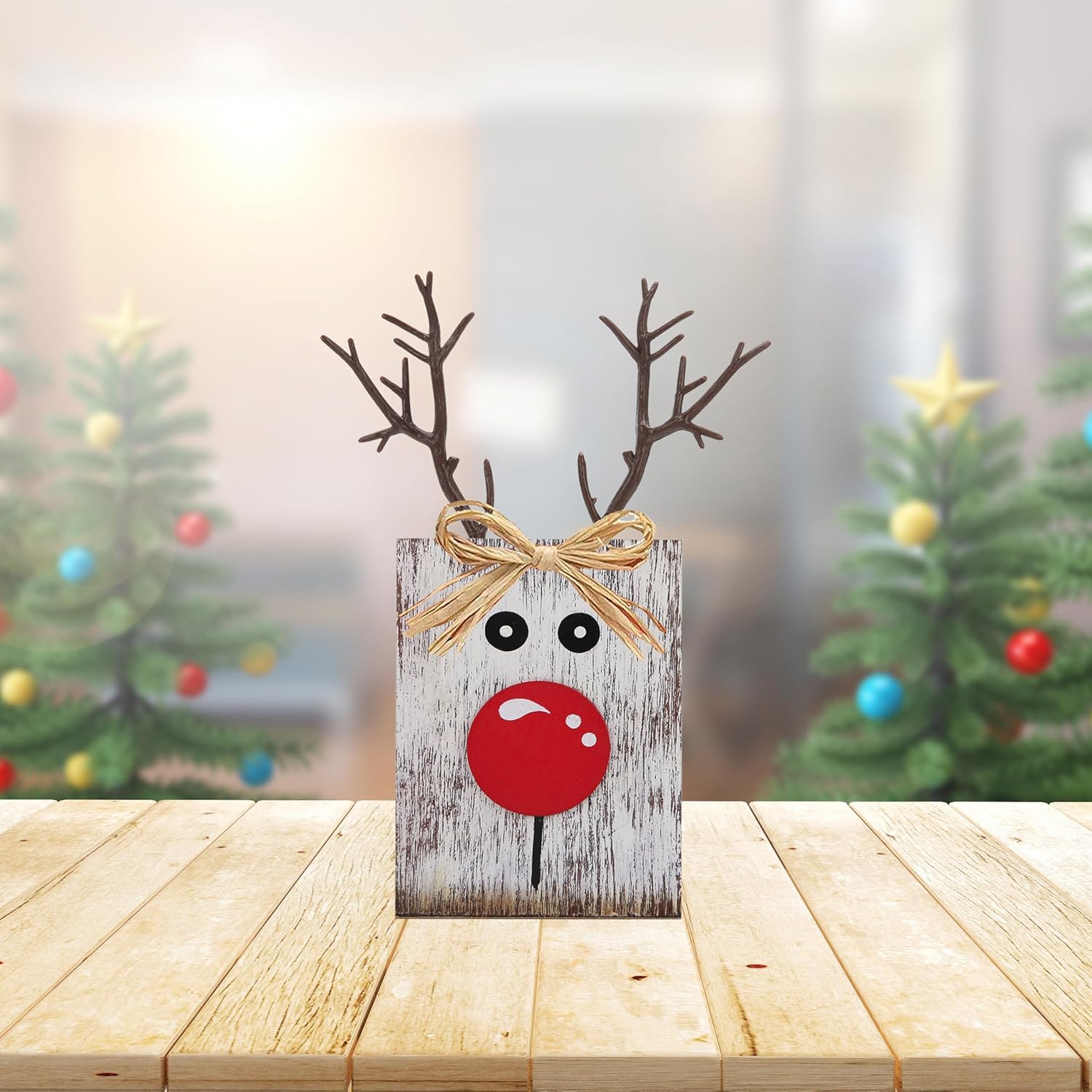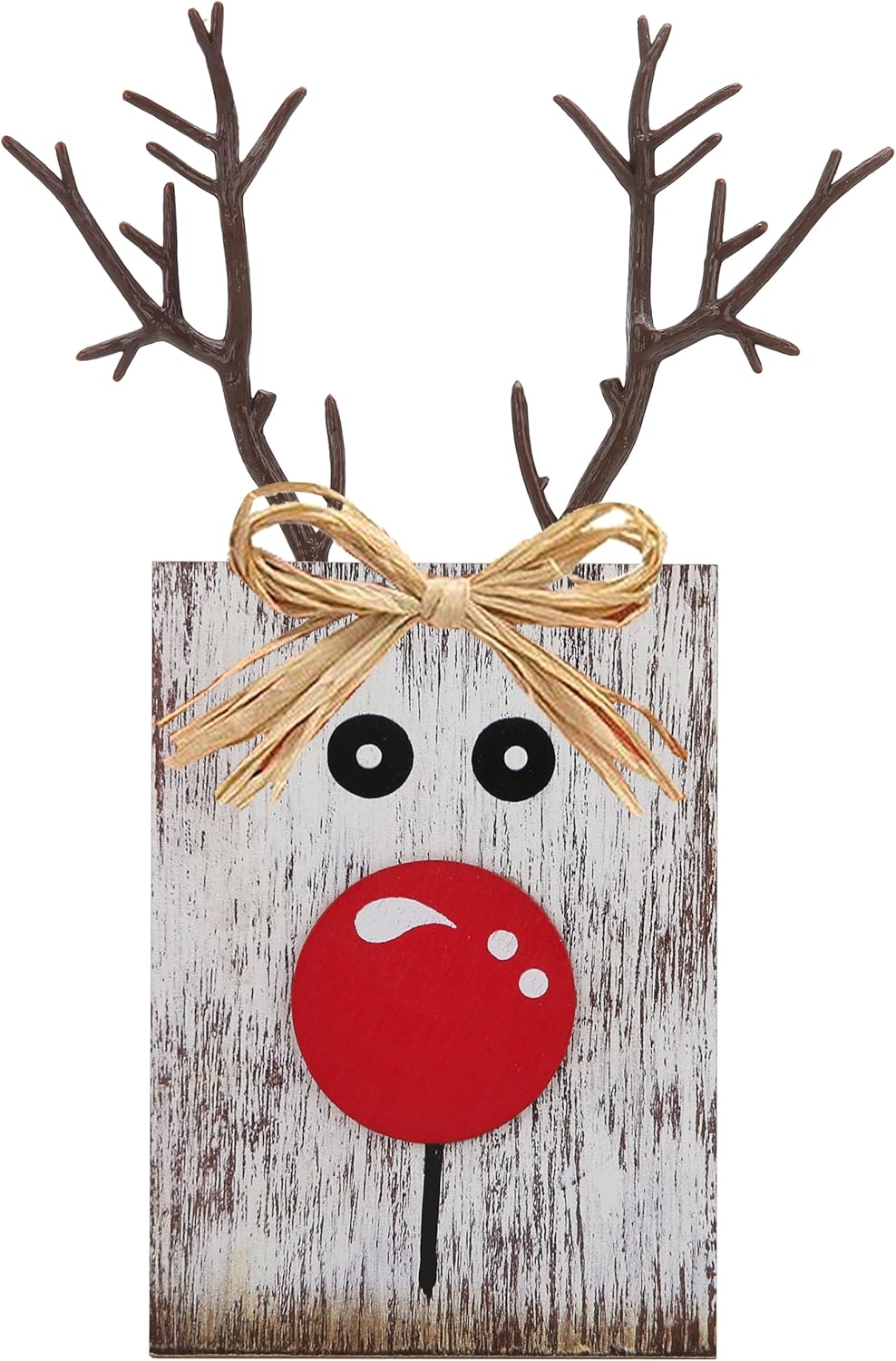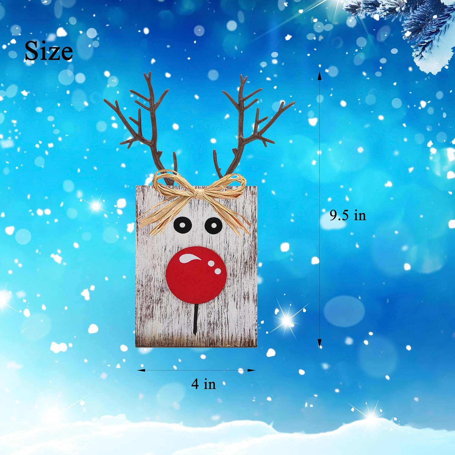 Rustic Wooden Reindeer Sign – Farmhouse Christmas Decor for Home, Kitchen, Mantel & Xmas Party