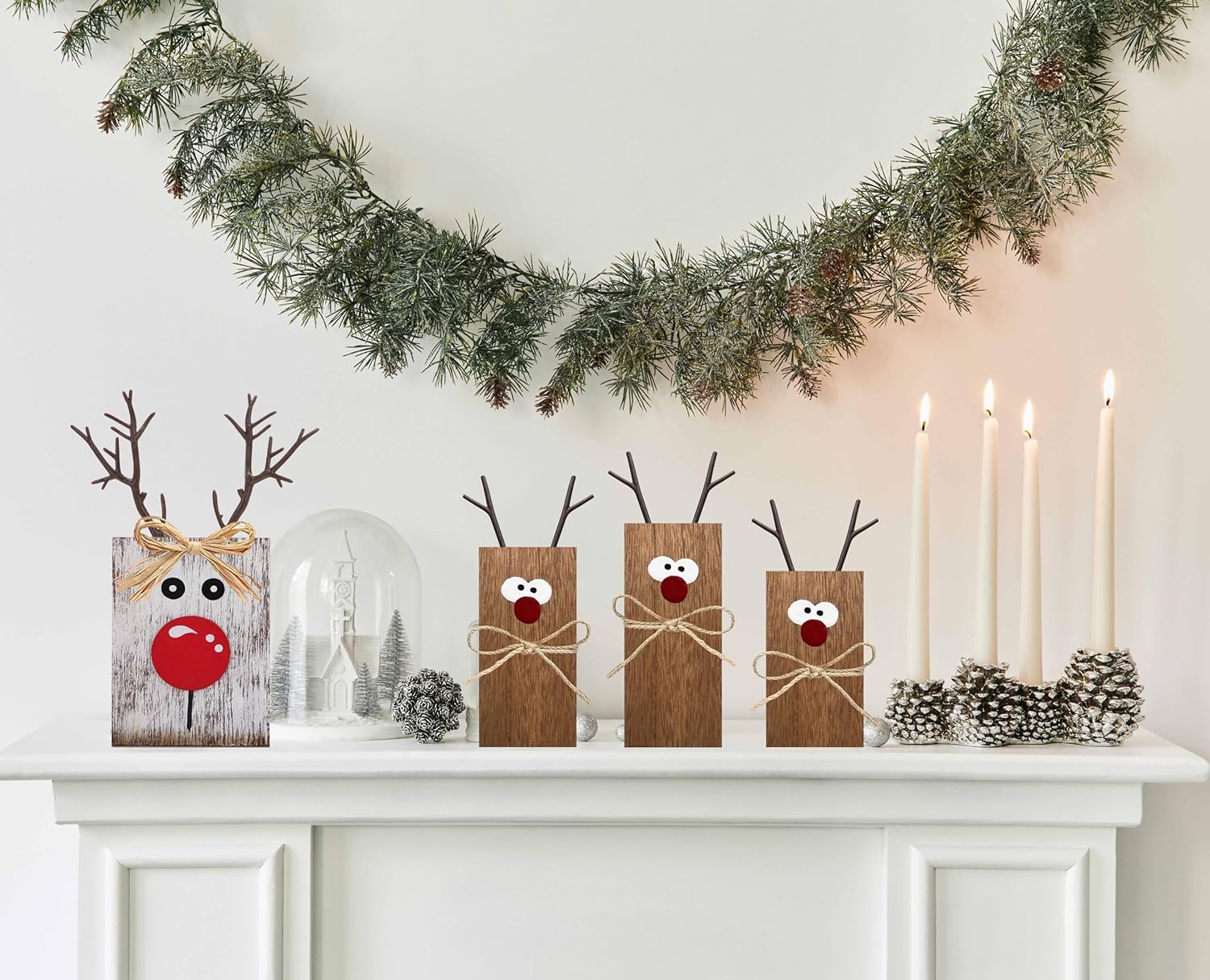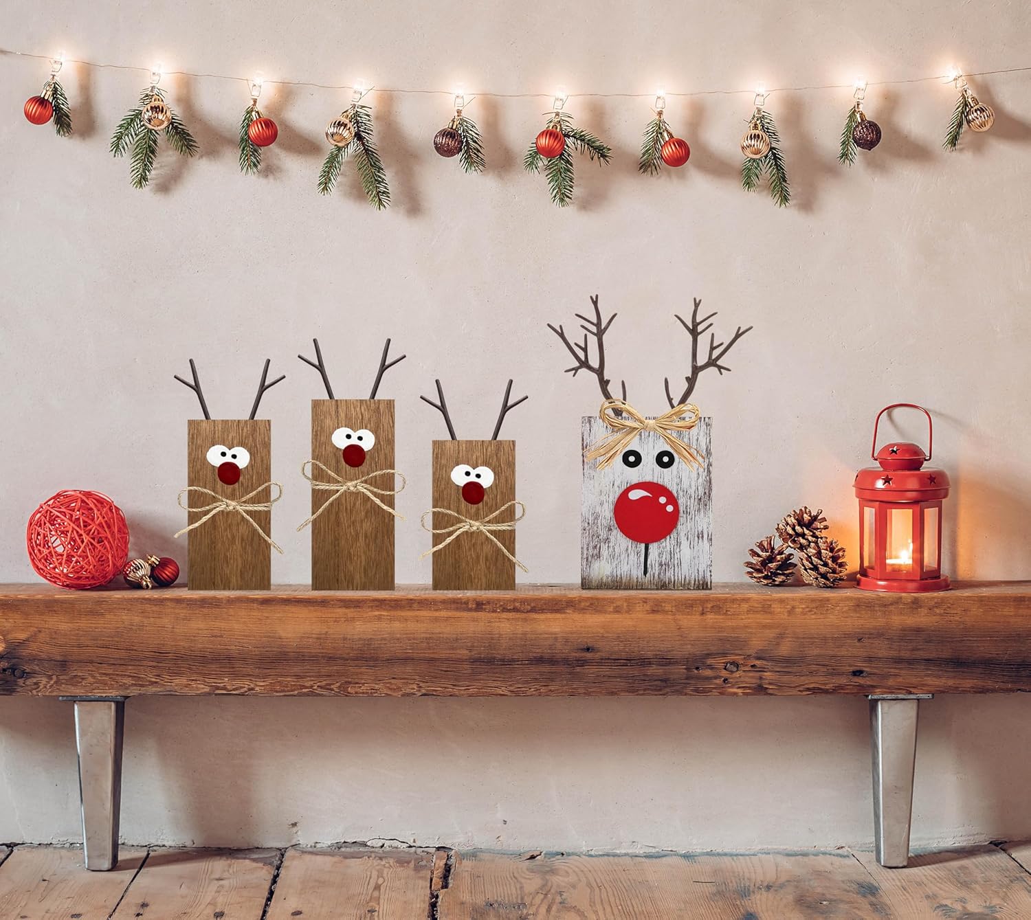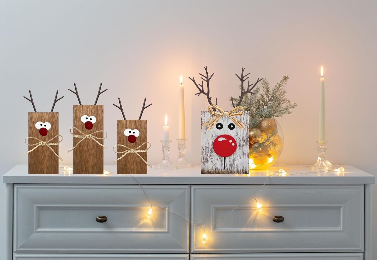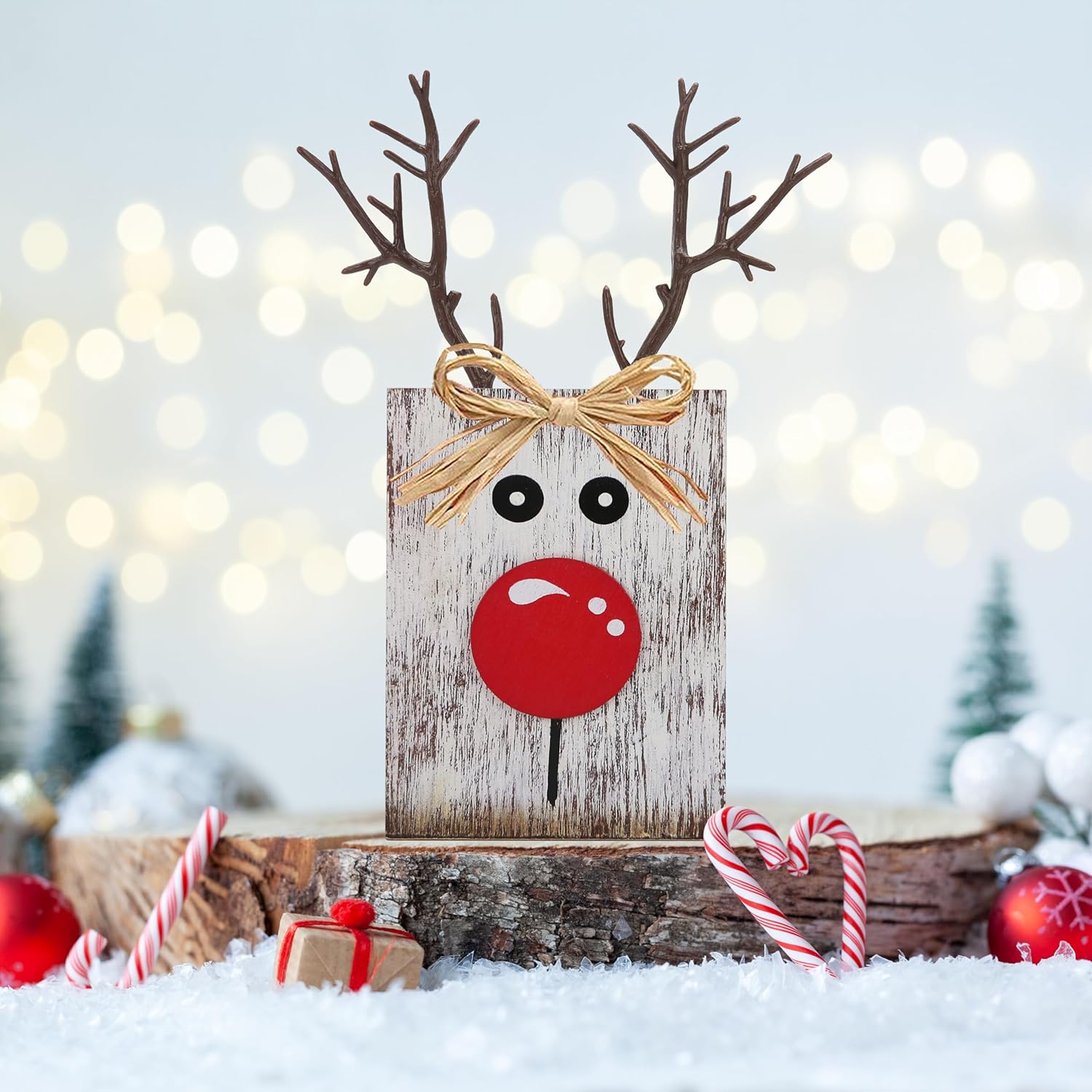 Rustic Wooden Reindeer Sign – Farmhouse Christmas Decor for Home, Kitchen, Mantel & Xmas Party