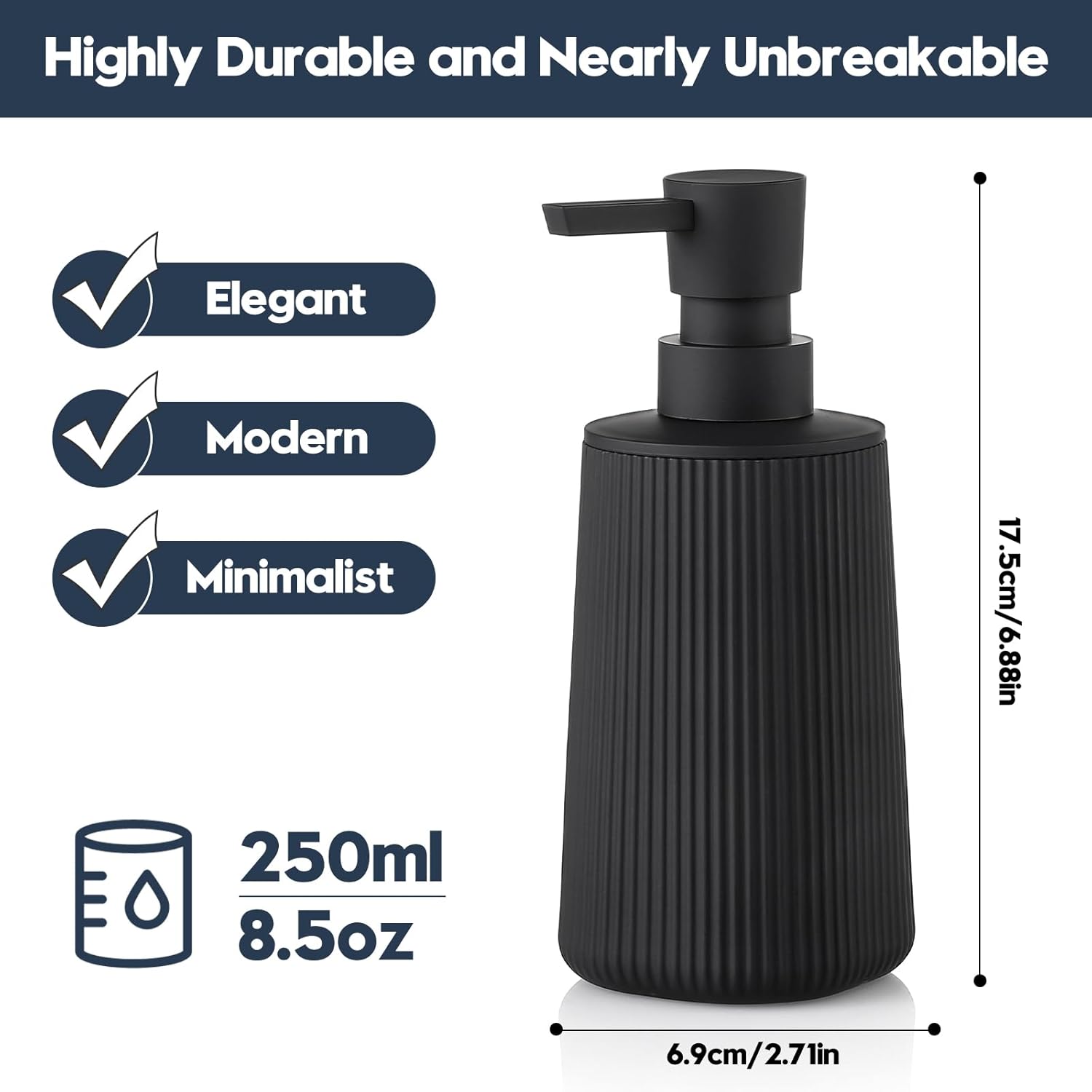 Small Soap Dispenser for Bathroom and Kitchen, Modern Farmhouse Striped Style Plastic Hand Soap Dish Soap Dispenser with Pump Matte Black