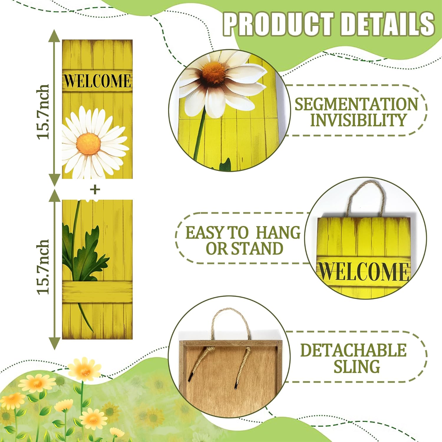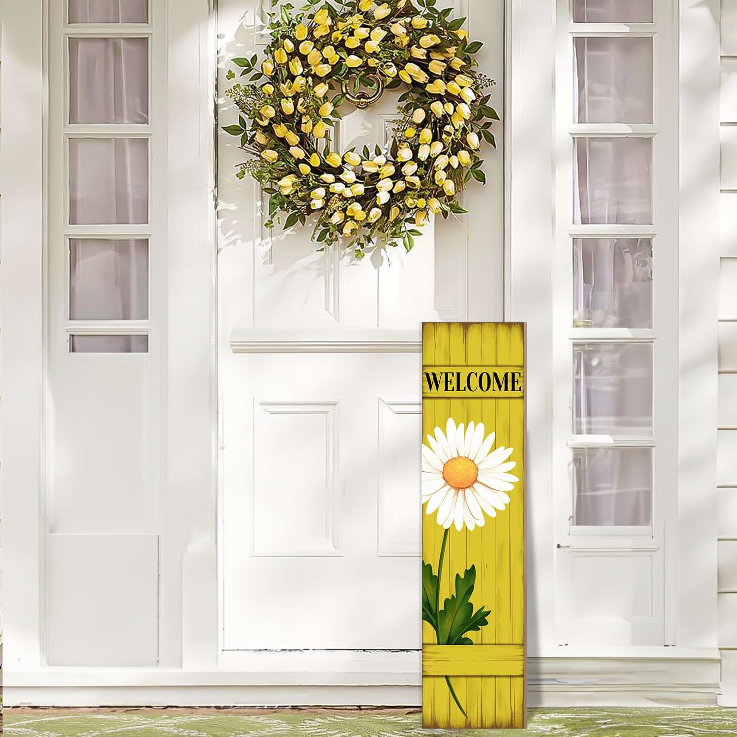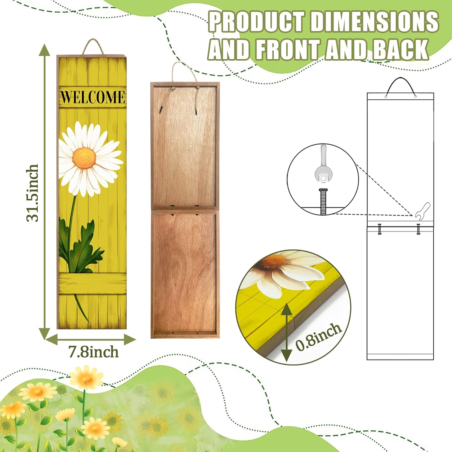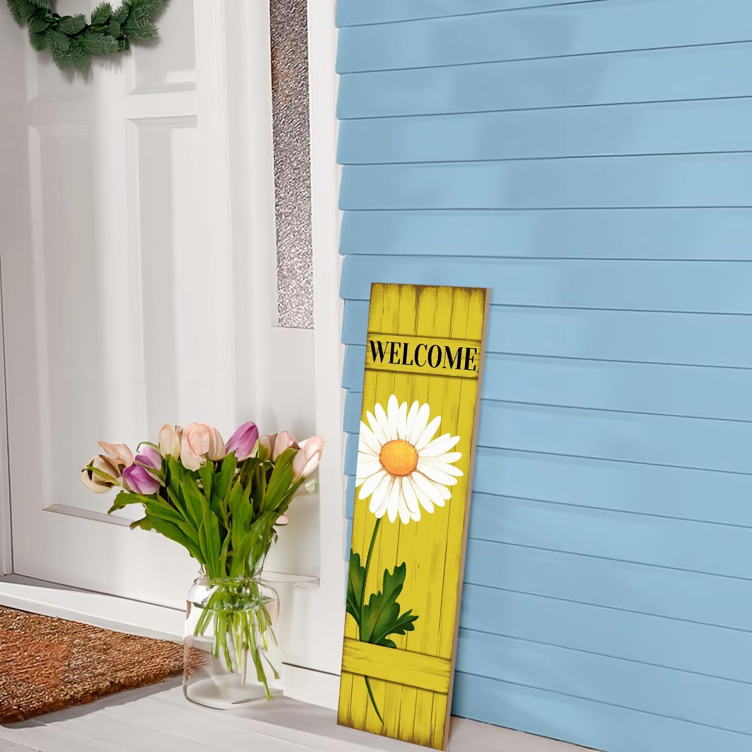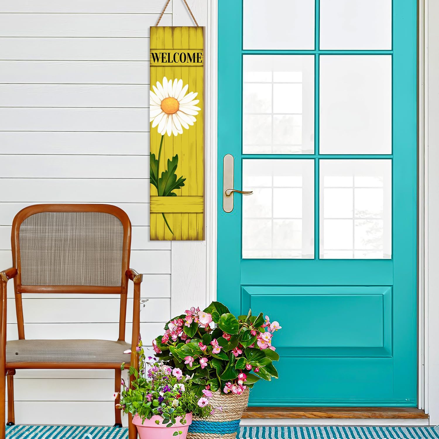 Spring Daisy Welcome Wooden Sign, Summer Rustic Daisy Porch Sign for Front Door Decorations, Front Porch Decor Home Hanging Signs Wall Sign 31.5″H