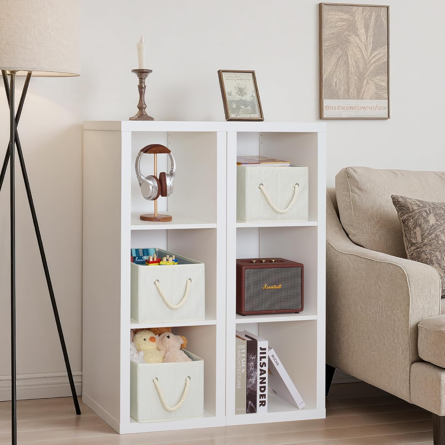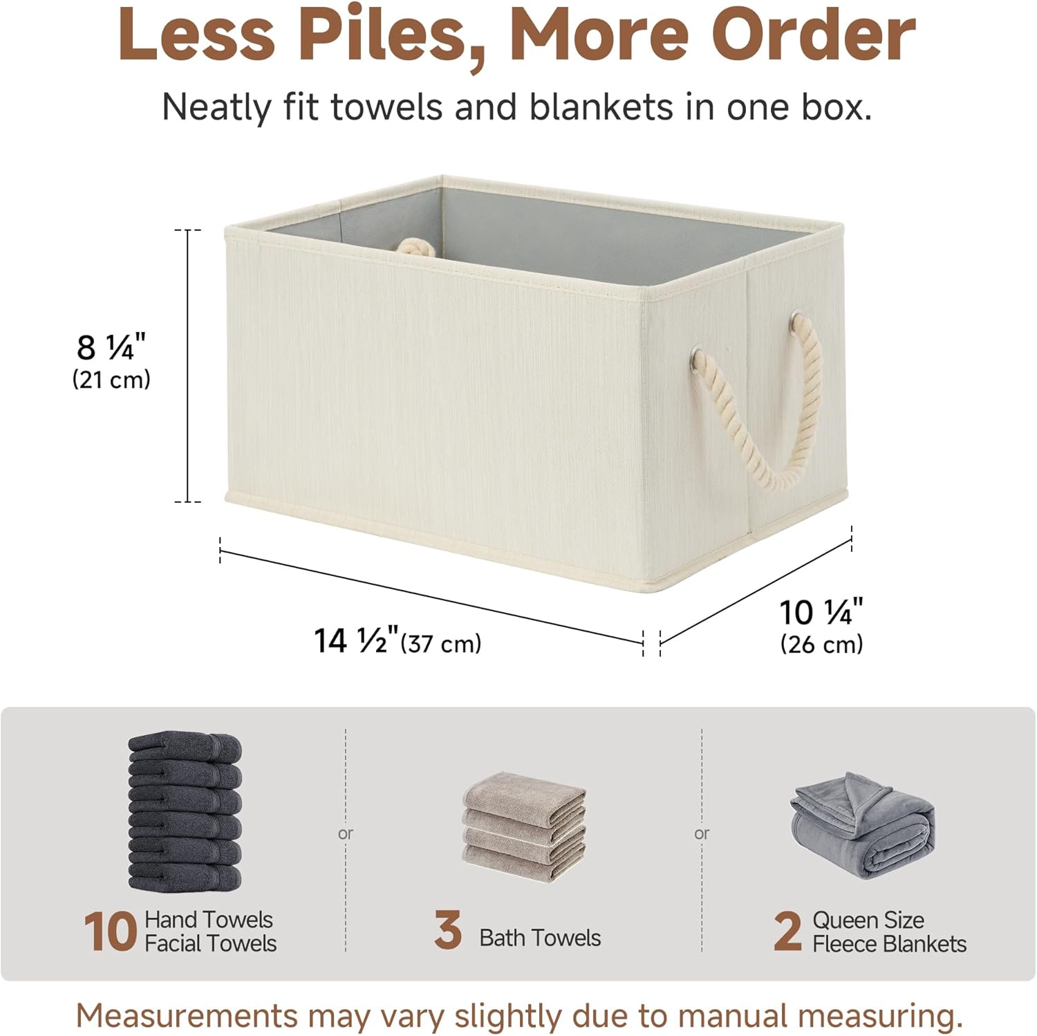 StorageWorks Storage Baskets for Shelves, Fabric Storage Bins, Closet Organization and Storage Basket, Foldable Organizer Bins for Clothes, Beige, White & Ivory, Large, 3-Pack
