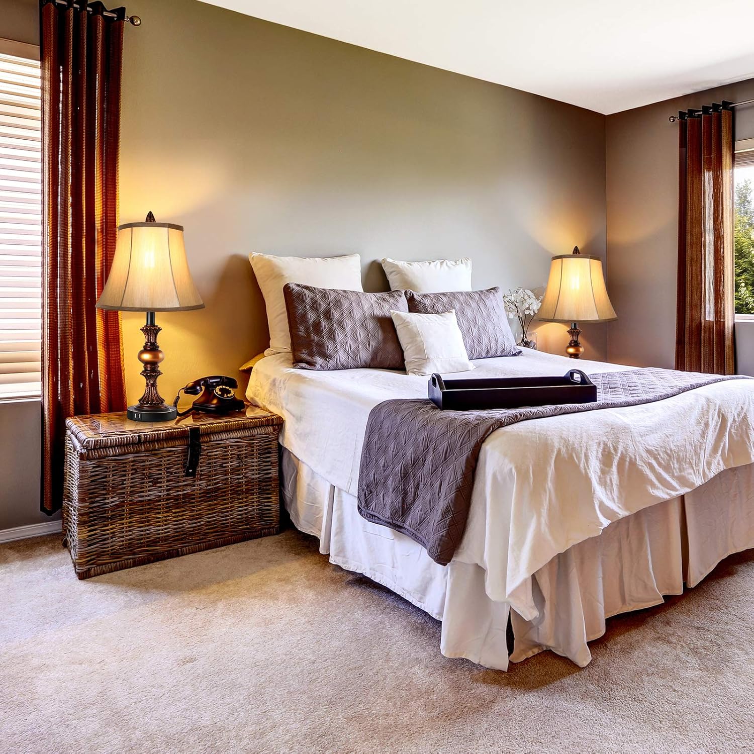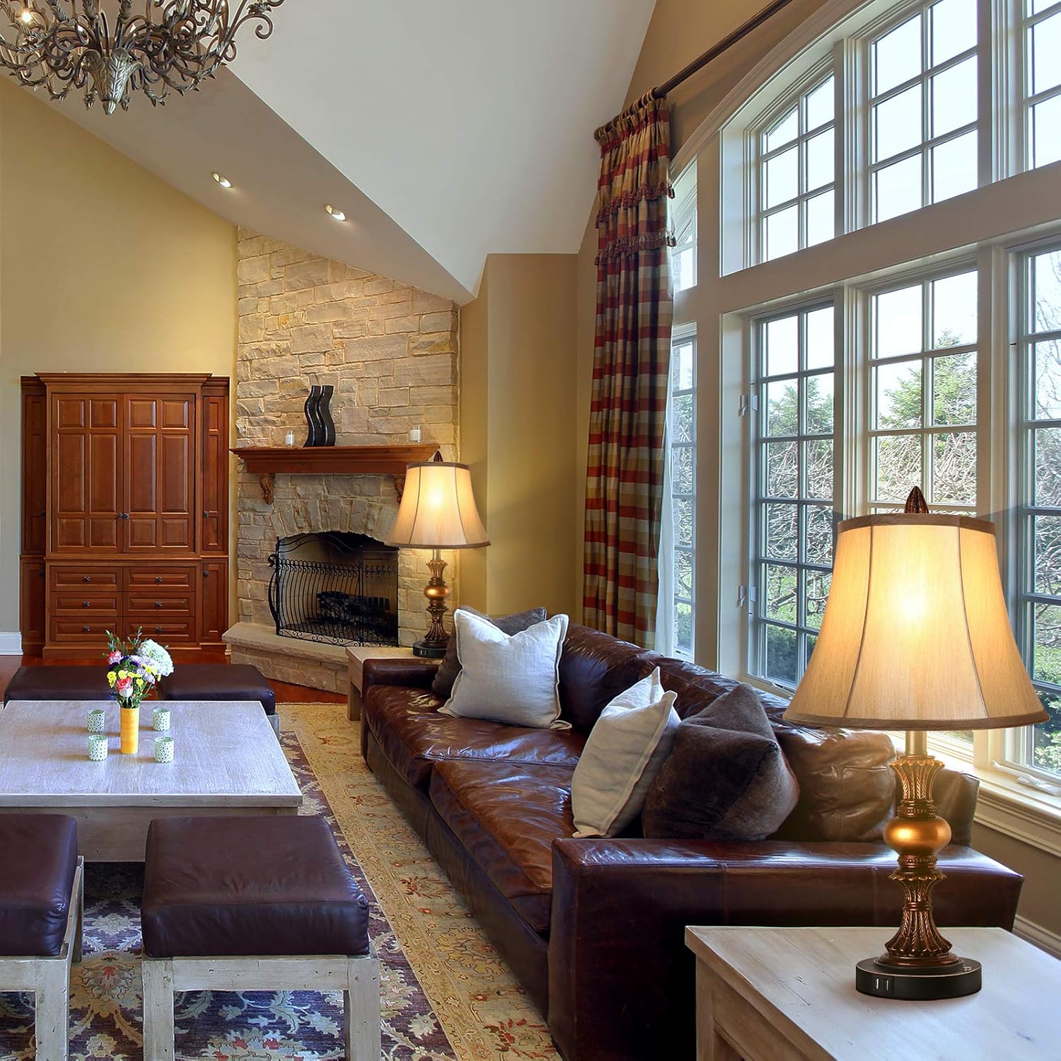 Touch Control Traditional Table Lamp Set of 2, Vintage Bedside Lamps with Dual USB Charging Ports, 3-Way Dimmable Bronze Finish Desk Lamps with Bell Shape Faux Silk Shade for Living Room, Bedroom