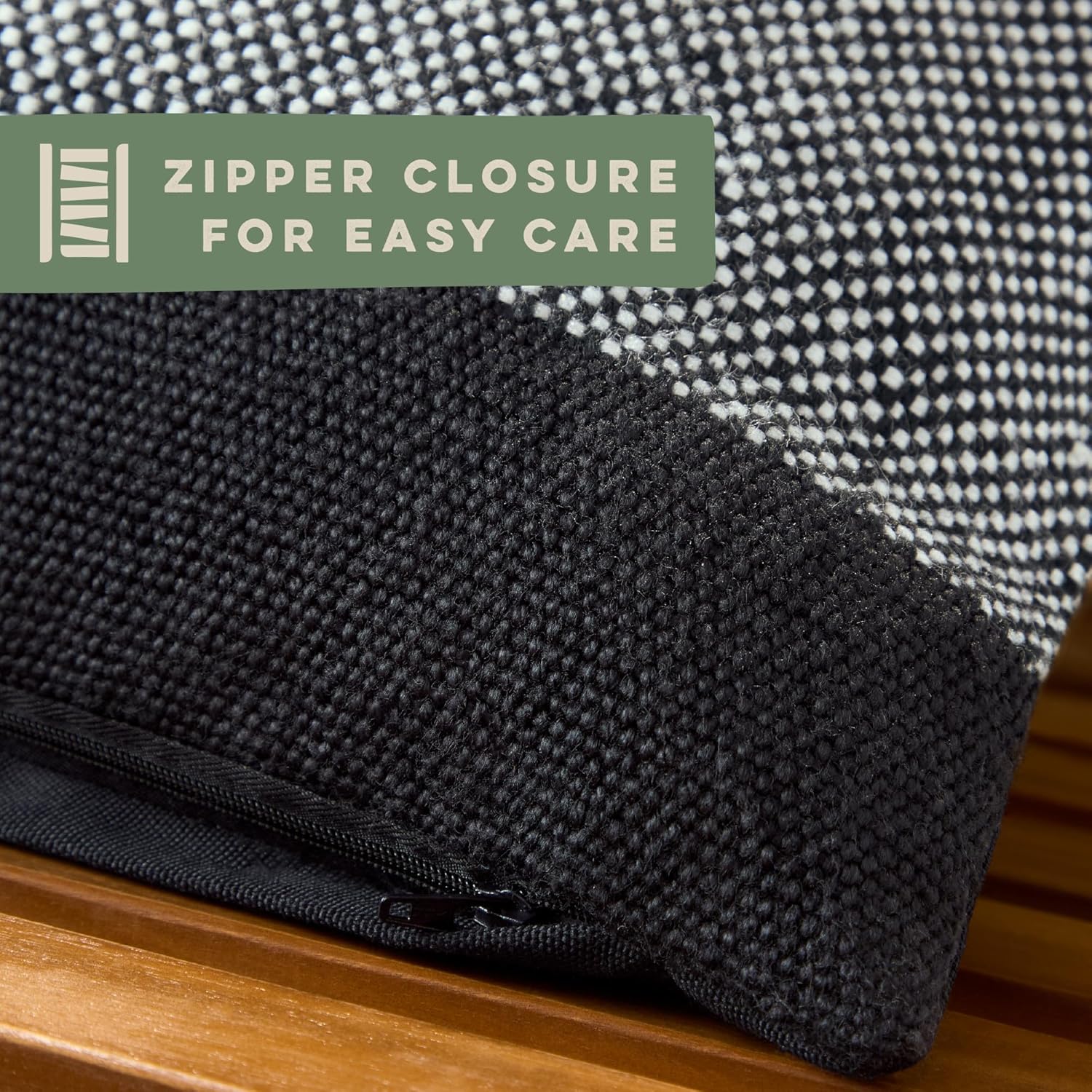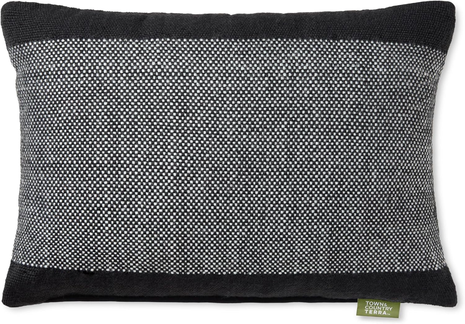 TOWN & COUNTRY TERRA Alara Solid Border Handcrafted Indoor Outdoor Decorative Pillow, 100% Recycled Materials, UV Fade Resistant, Water Repellent, Black/Ivory, 14″x20″