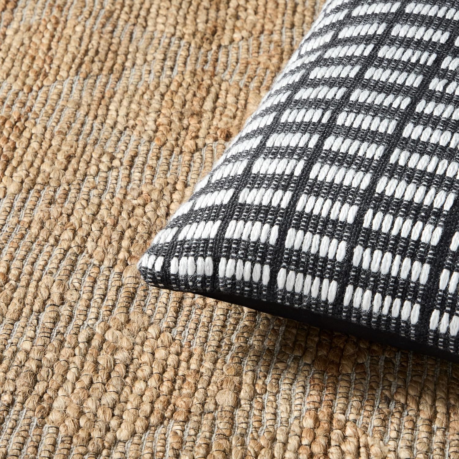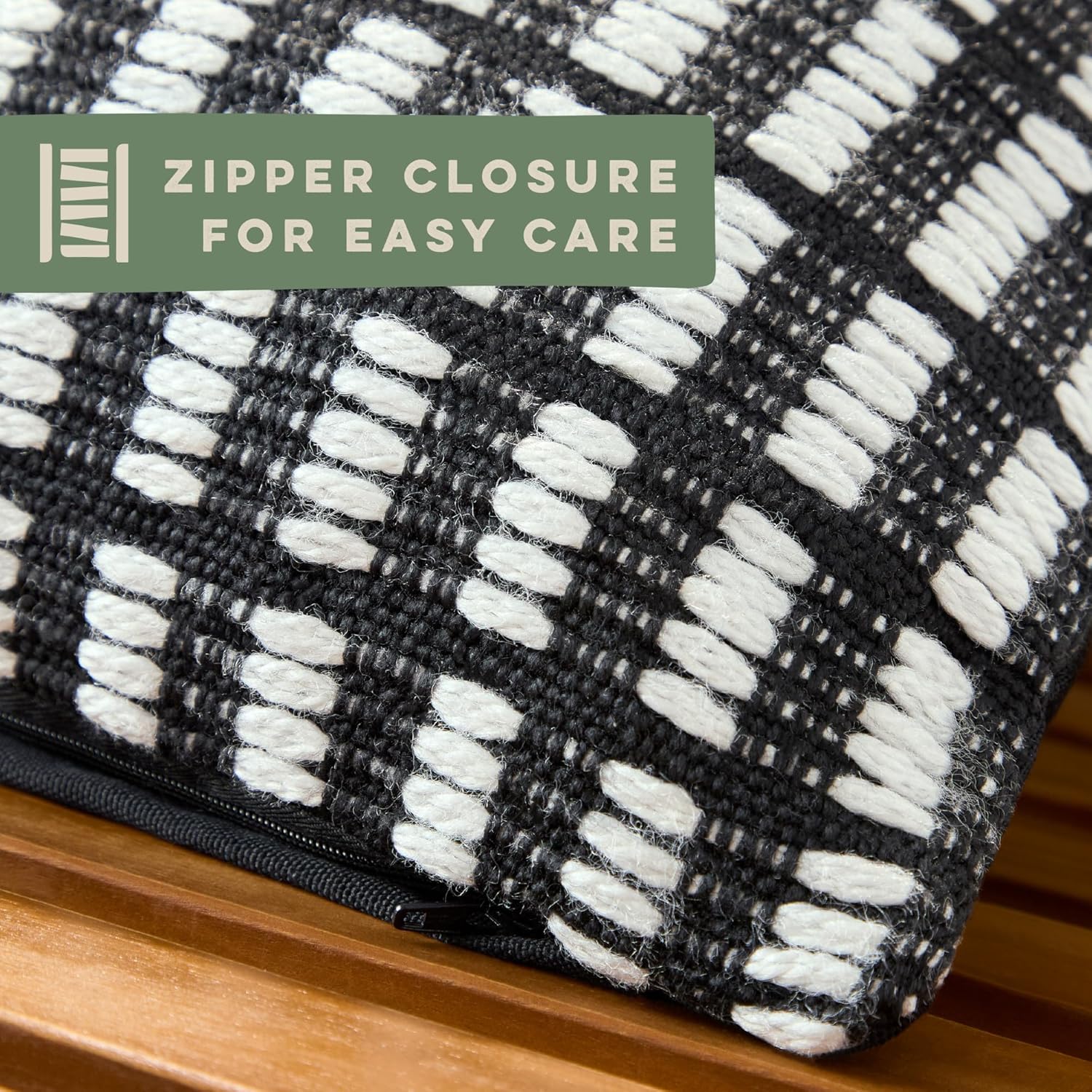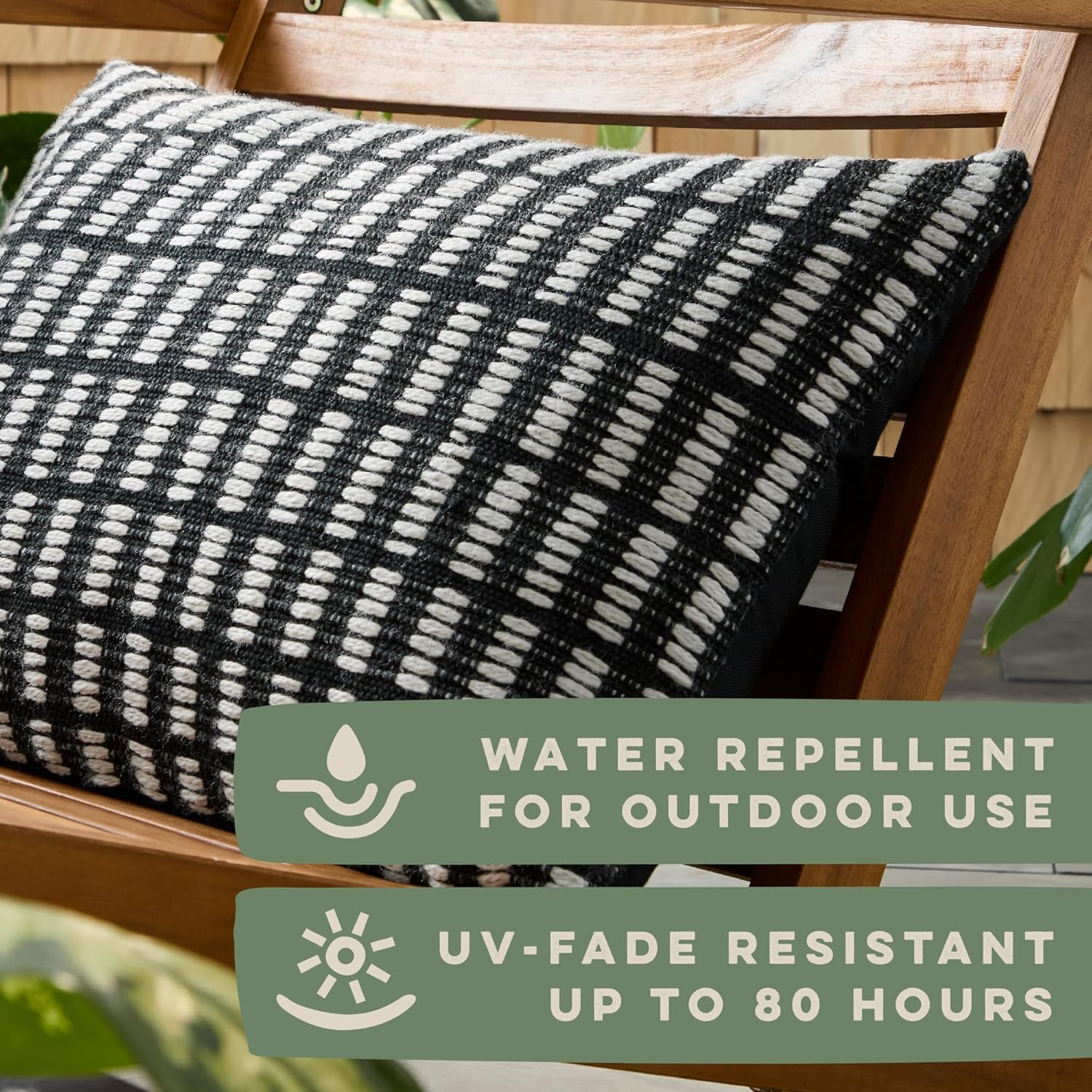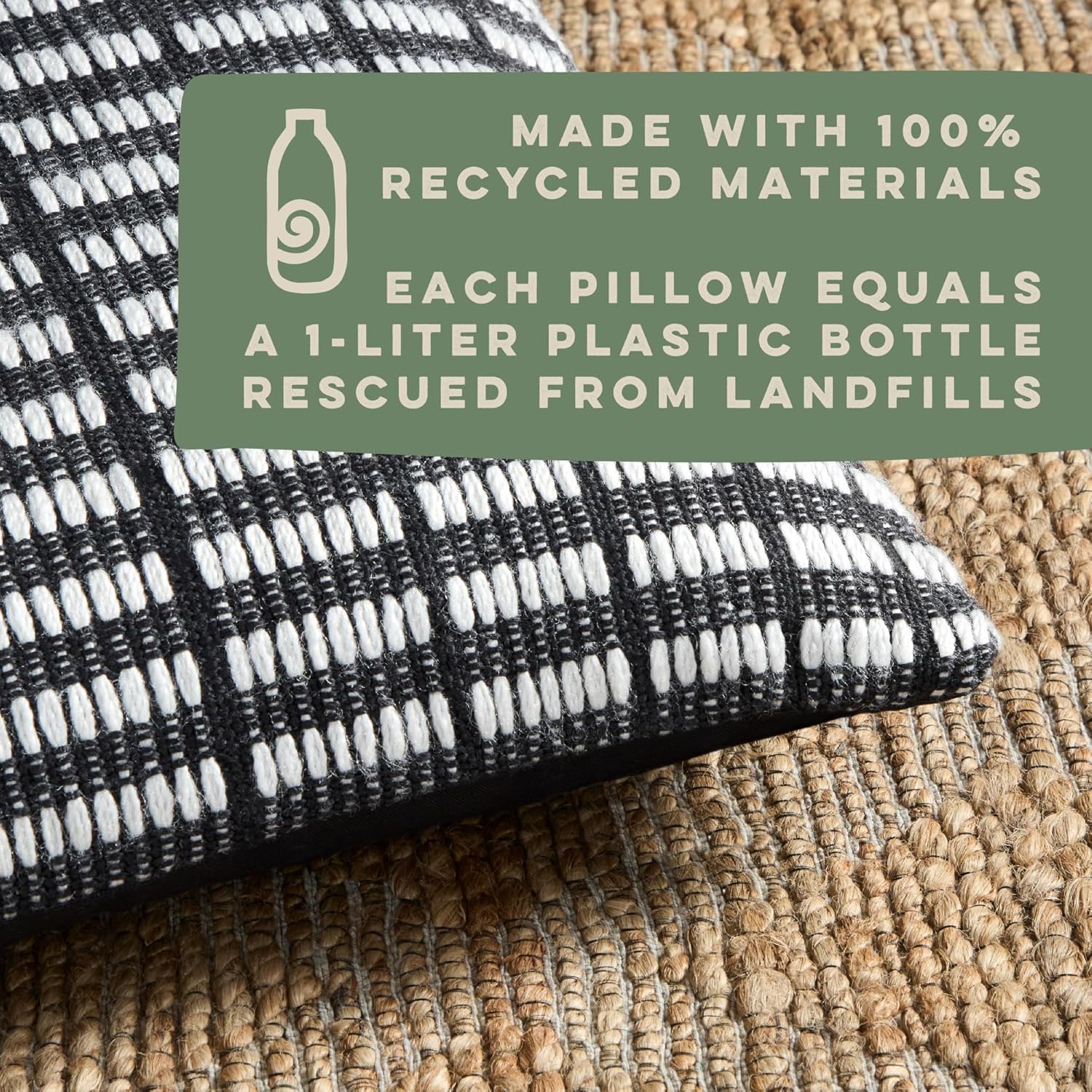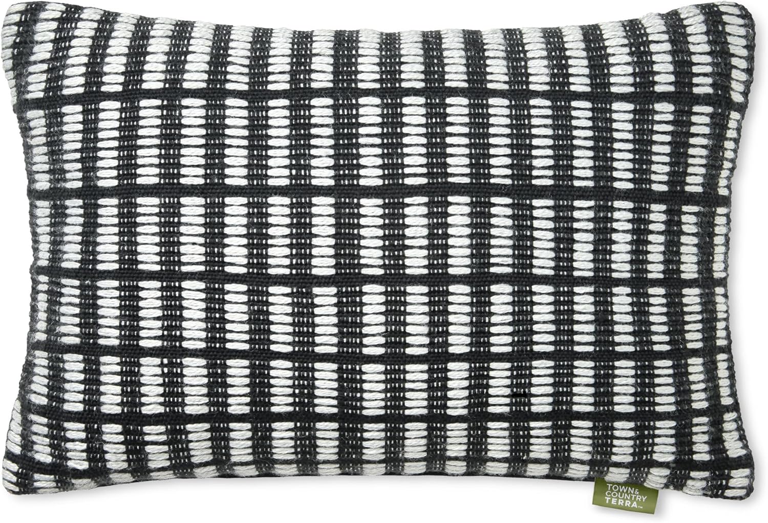 TOWN & COUNTRY TERRA Alara Textured Geo Stripe Handcrafted Indoor Outdoor Decorative Pillow, 100% Recycled Materials, UV Fade Resistant, Water Repellent, Black/Ivory, 14″x20″