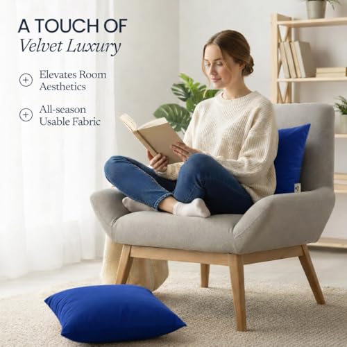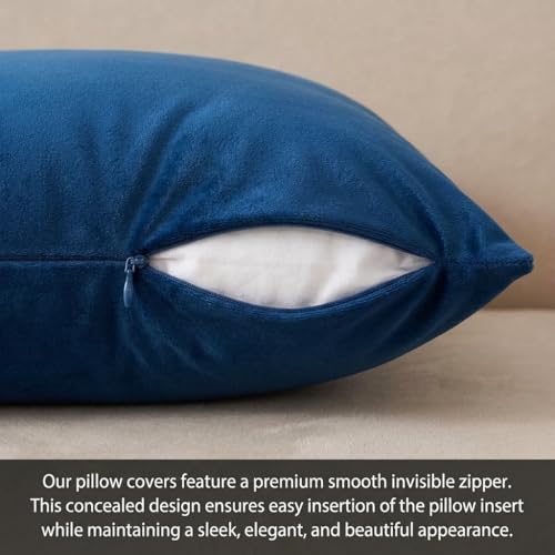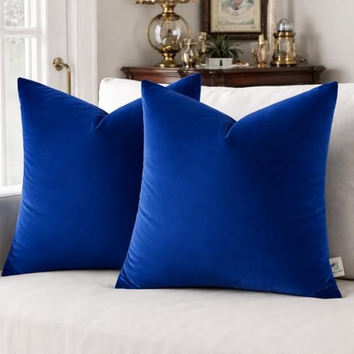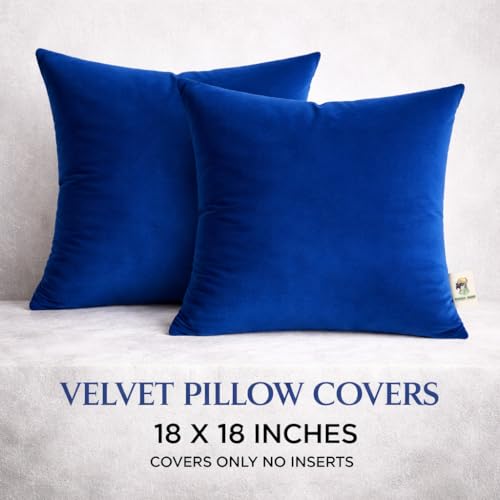 Velvet Pillow Covers 18×18 Set of 2 | Soft Plush Decorative Throw Pillow Cases | Hidden Zipper Home Decor (Royal Blue)