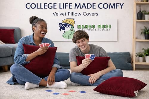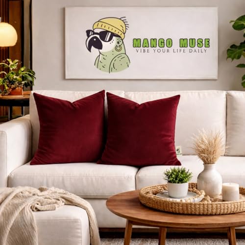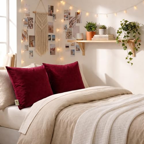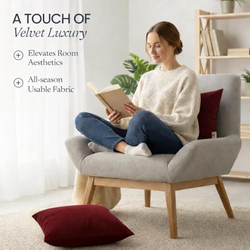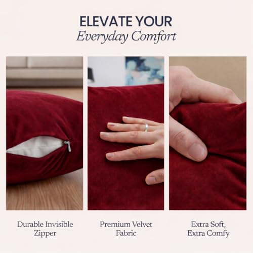 Velvet Pillow Covers 18×18 Set of 2 | Soft Plush Decorative Throw Pillow Cases | Hidden Zipper Home Decor (Wine Red)
