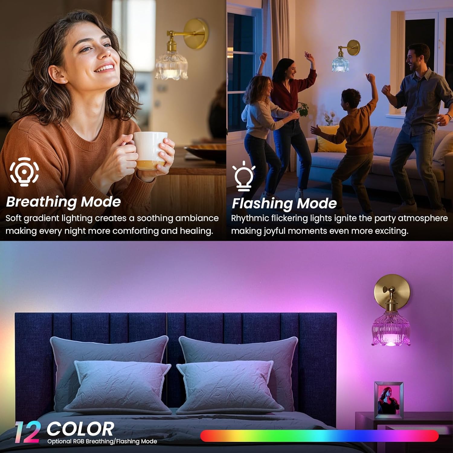 LED Wall Sconces 2 Pcs with Remote,...