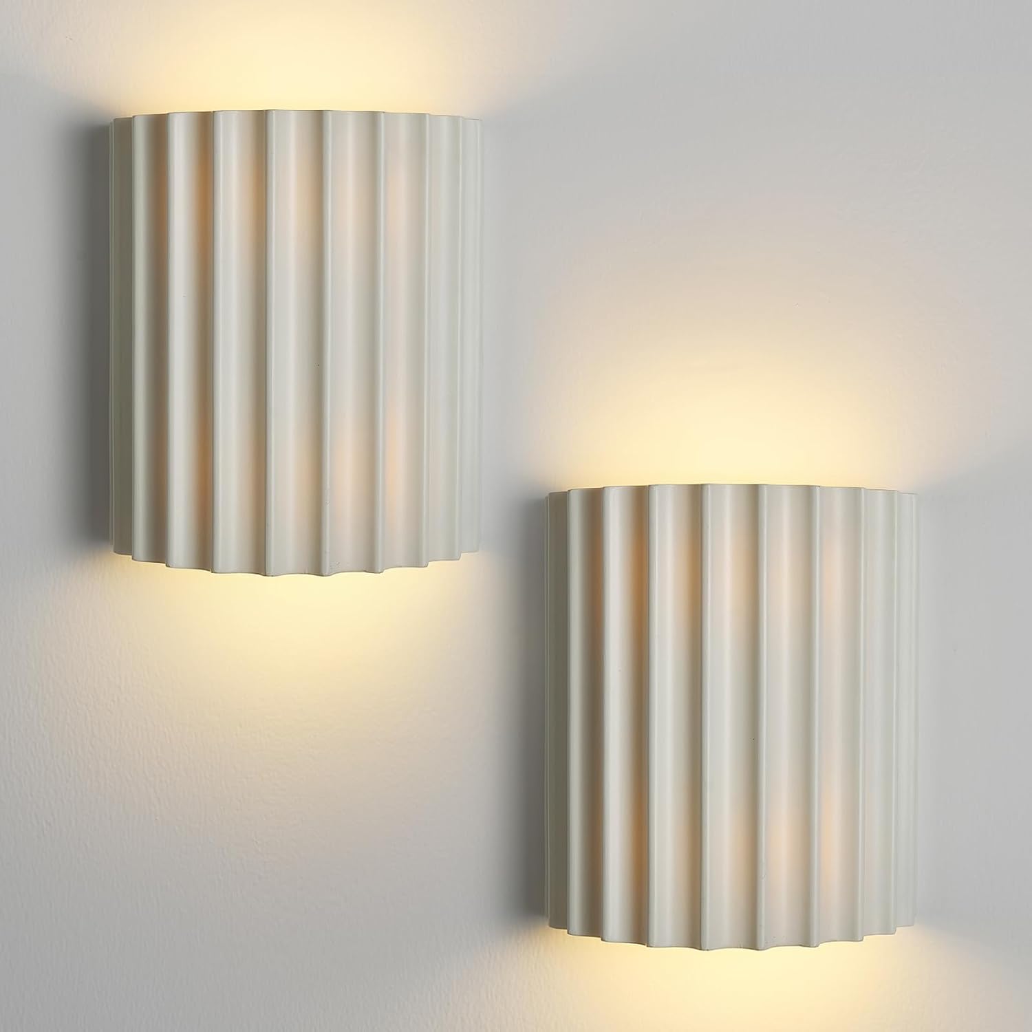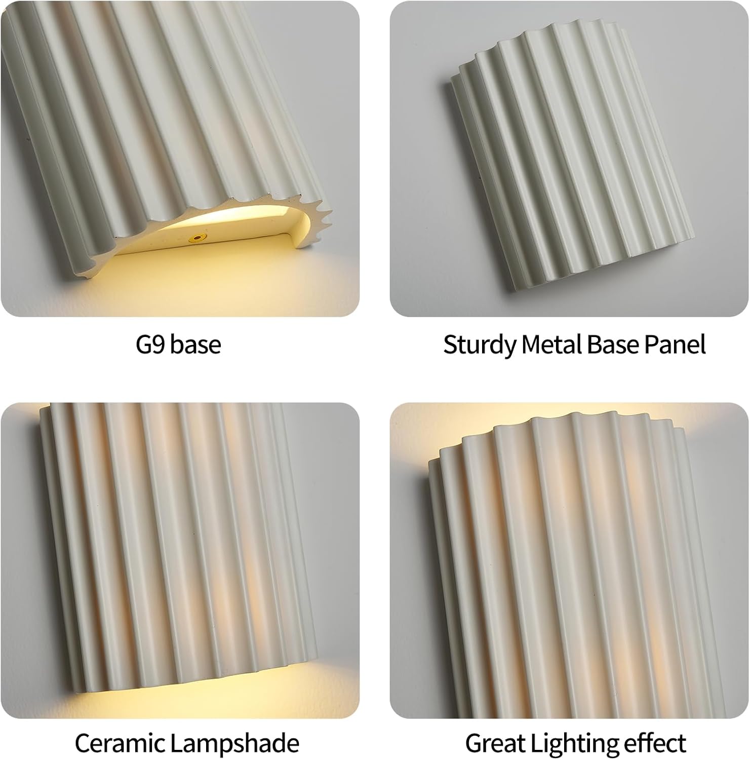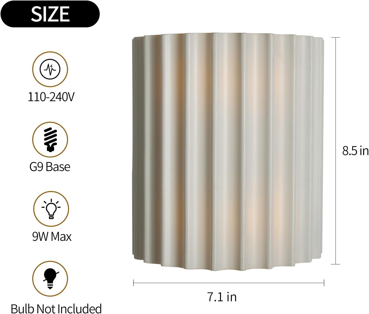 White Resin Modern LED Wall Sconces Wall Lighting Set of 2, Indoor Hardwired Wall Light Fixtures Up and Down Wall Mount Light Lamp for Living Room Bedroom Bedside Hallway with G9 Bulb