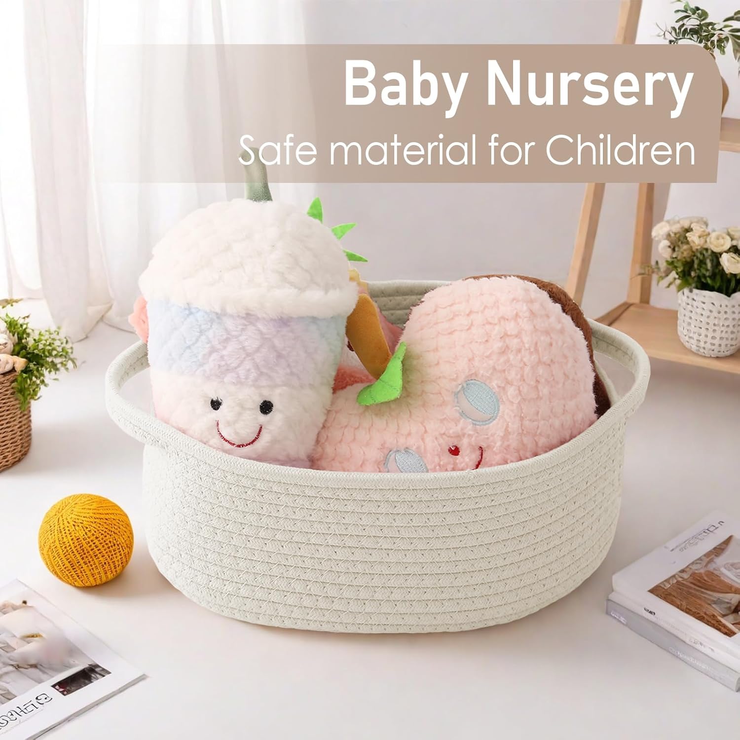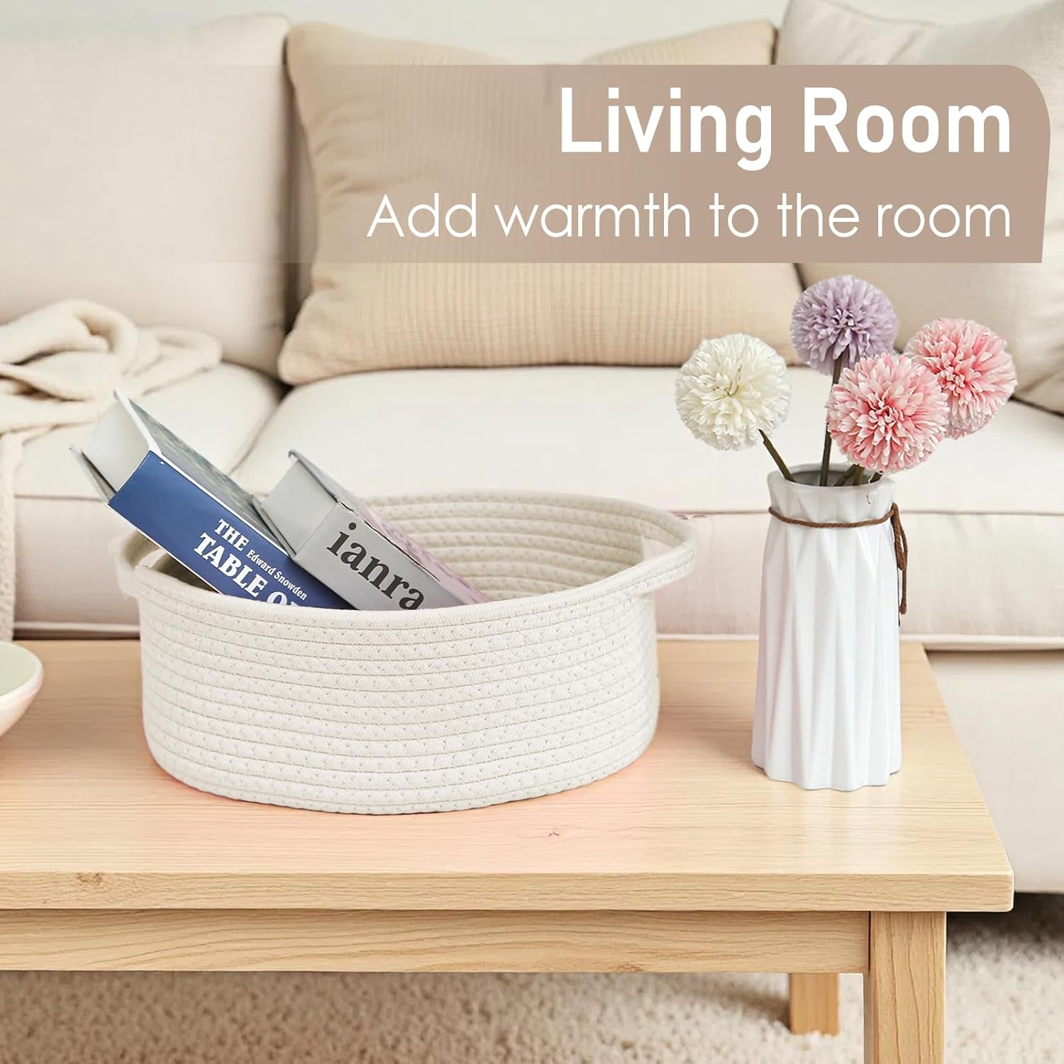 Woven Basket,Small Rope Storage Bin with Handles & Ribbon Bag, Organizer for Shelves Closets,Gift Basket Empty for Birthday,Books,Dog Toys,White