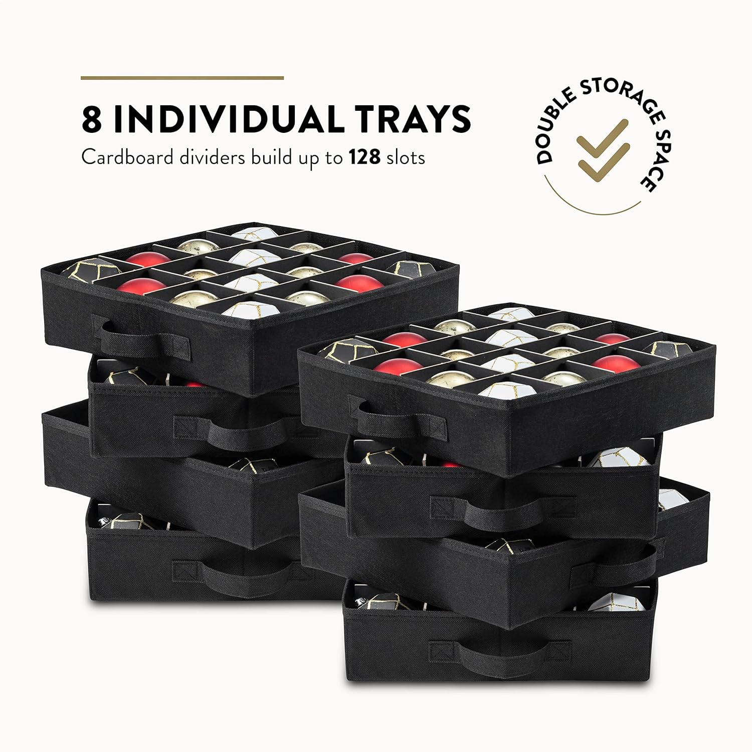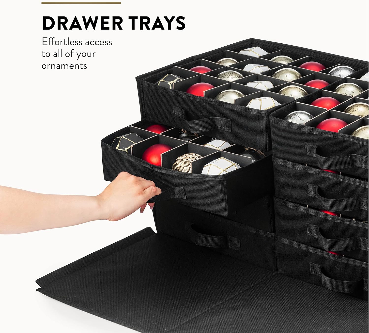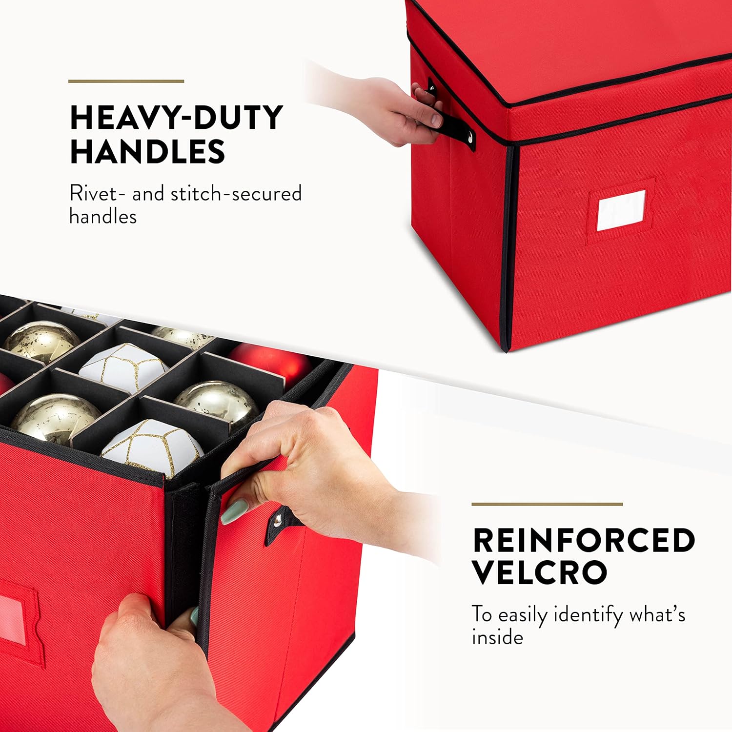 ZOBER Christmas Ornament Storage Box – Stores 128 3″ Ornaments with Drawer Style Trays – Tear Proof 600D Oxford Fabric – Ornament Organizer Storage Box, Durable Christmas Containers Holder – Red